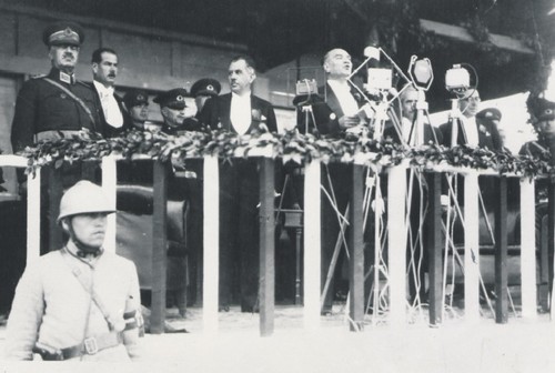 President Atatürk is making a speech on the tenth anniversary of the Republic.