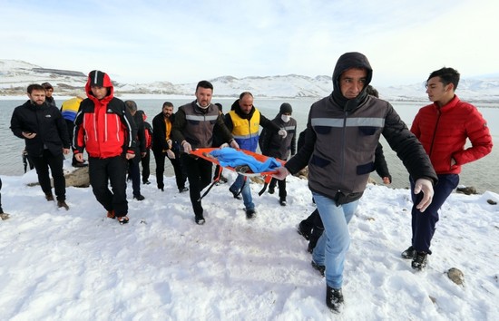 A Turkish police diver braced the freezing waters of a lake in eastern Turkey's Van province to save a dog from certain death.