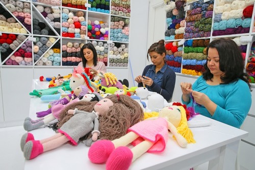 The women meet in their homes or at knitting workshops to make the colorful toys in the shapes of cartoon characters and animals, in the "amigurumi" Japanese style of crocheting.