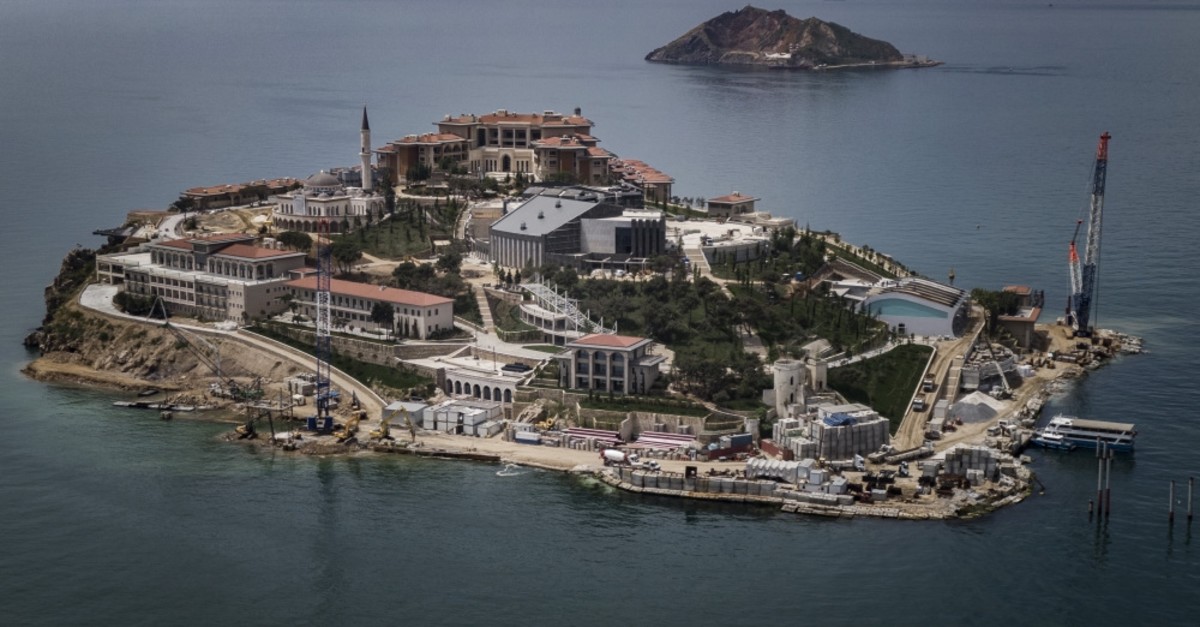 Four years of work on the island have changed the place into the home of a massive complex where a 125-room hotel, a 600-seat conference hall, a mosque, museum and exhibition halls, as well as cafes and restaurants are now located. Workers are putting the final touches on the construction work on the 18.3-hectare island.