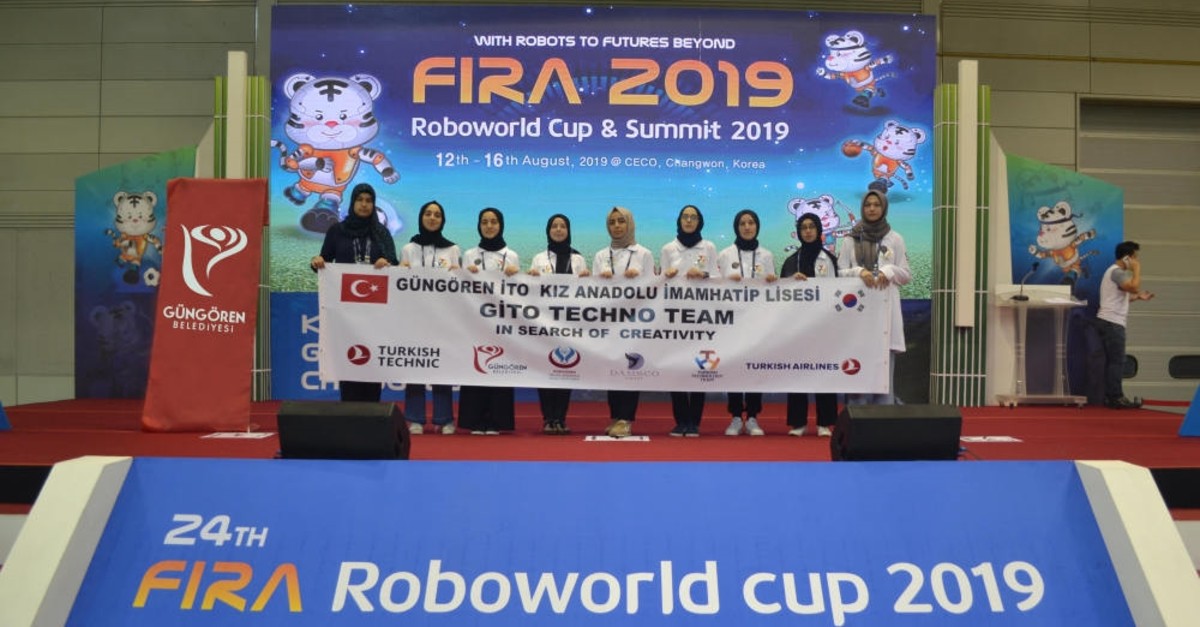 A team of students from the Güngören İTO Girls' İmam-Hatip School of Istanbul won the third spot at the Roboworld Cup in South Korea's Changwon on Friday.