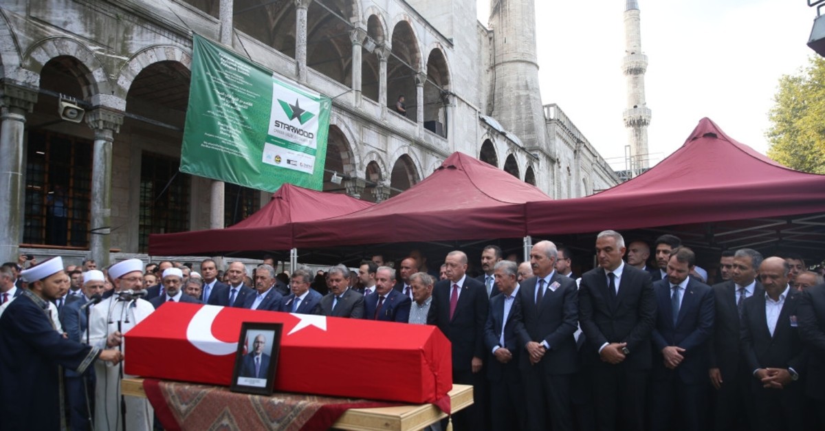 President Recep Tayyip Erdou011fan and other dignitaries attended funeral prayers for Dursun in Istanbul, Aug. 20, 2019.