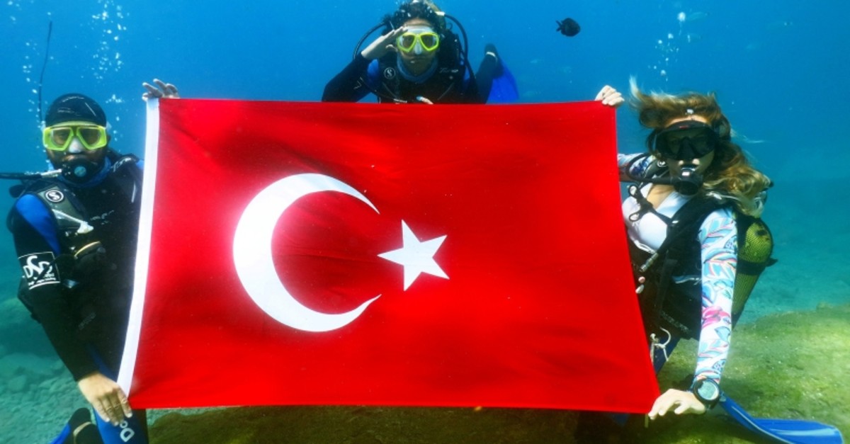 In similar events, a group of divers dived into a depth of five meters with a Turkish flag off the coast of Fethiye, in southwestern Turkey, while another group unfurled a Turkish flag and a small poster of Atatürk eight meters under the Marmara Sea off the coast of northwestern Kocaeli province.