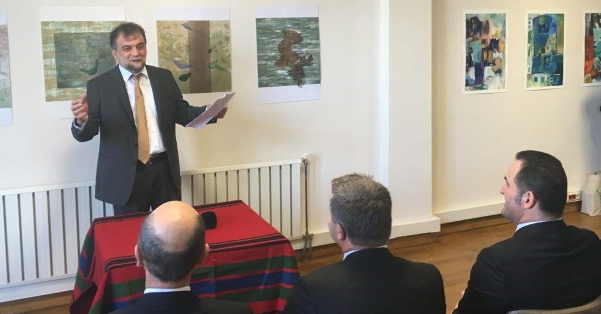 Ramadan Ramadani, director of the North Macedonia Cultural Center in Istanbul, speaks at the inauguration ceremony of the center, Dec. 18, 2019. (AA Photo)