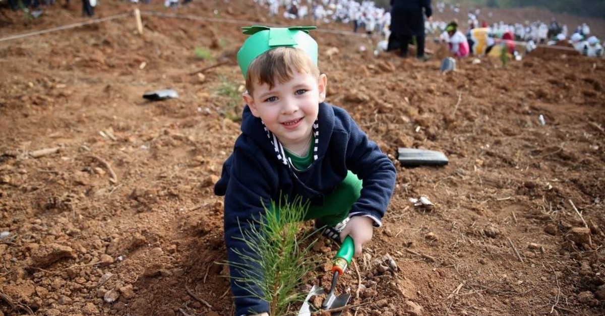 A boy plants a sapling on National Forestation Day, Sakarya, Nov. 11, 2019. (AA Photo)