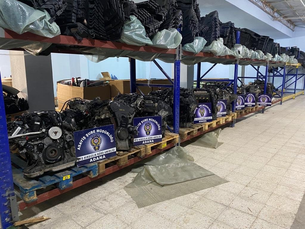 Police in the southern Turkish province of Adana on Tuesday seized 72 engines removed from cars stolen in Turkey and other countries. Two suspects running the garage, where the engines were found, have been detained.