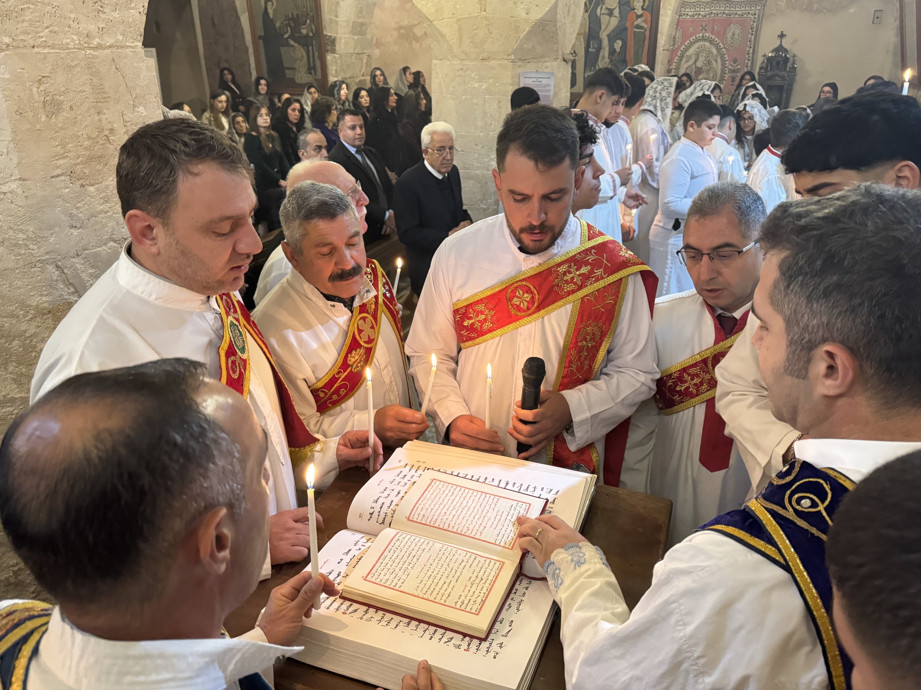 Following the ceremony, members of the Syriac community gathered in the church courtyard to exchange holiday greetings.