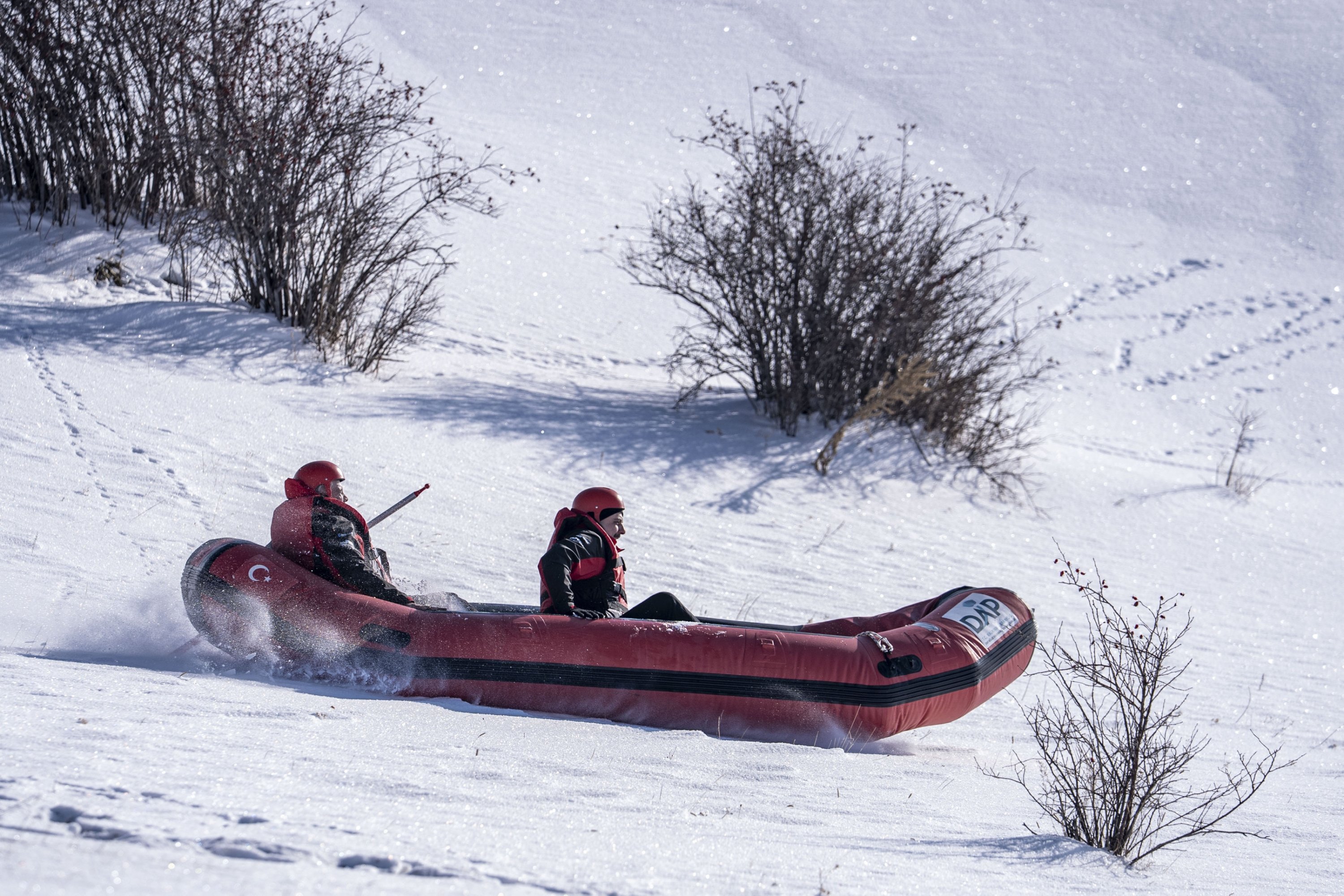 Following the feeding activity, participants moved to the fully frozen Söğütlü Pond, where snow rafting took place on the icy surface. Erzurum Governor Mustafa Çiftçi also joined the activity, which drew strong interest from nature and adventure enthusiasts.