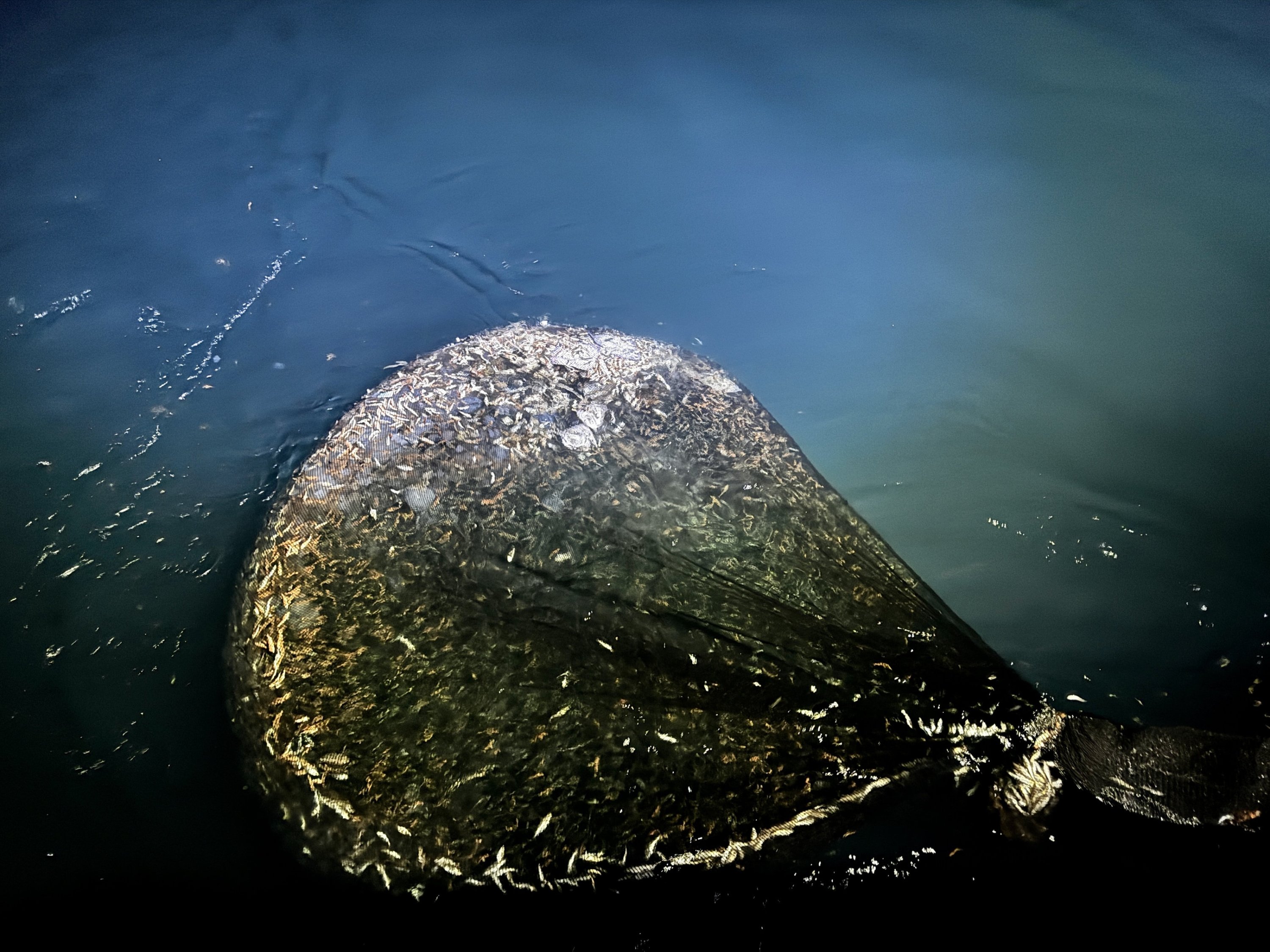 The fishermen noted that fish species like horse mackerel and sardines were being sought with sonar and vertical radars, while the first catches did not include anchovies or sufficient quantities of bonito.