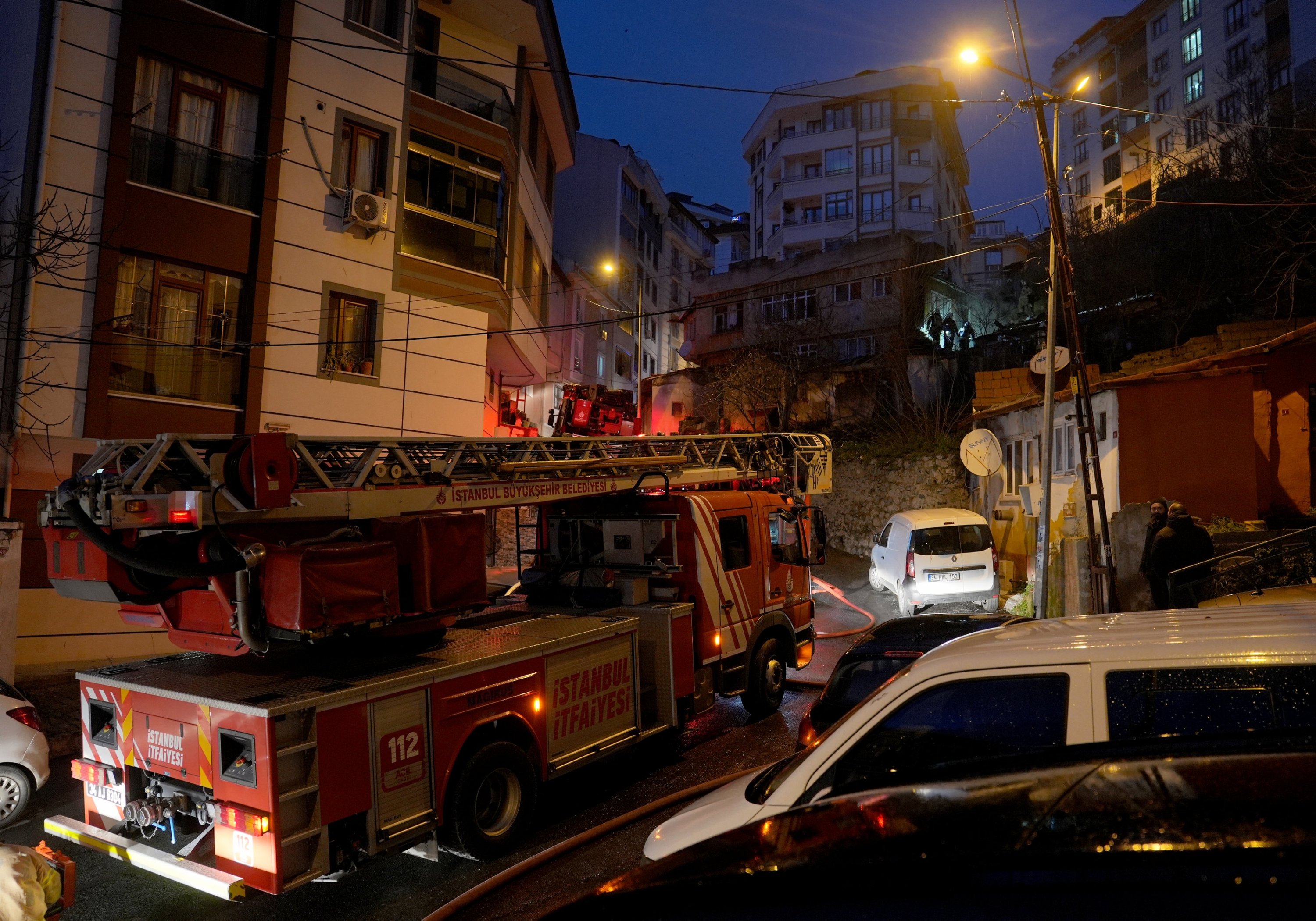 Firefighters intervene in a shanty house fire that spread to a neighboring building in Eyüpsultan, Istanbul, Türkiye, Jan. 22, 2025. (AA Photo)