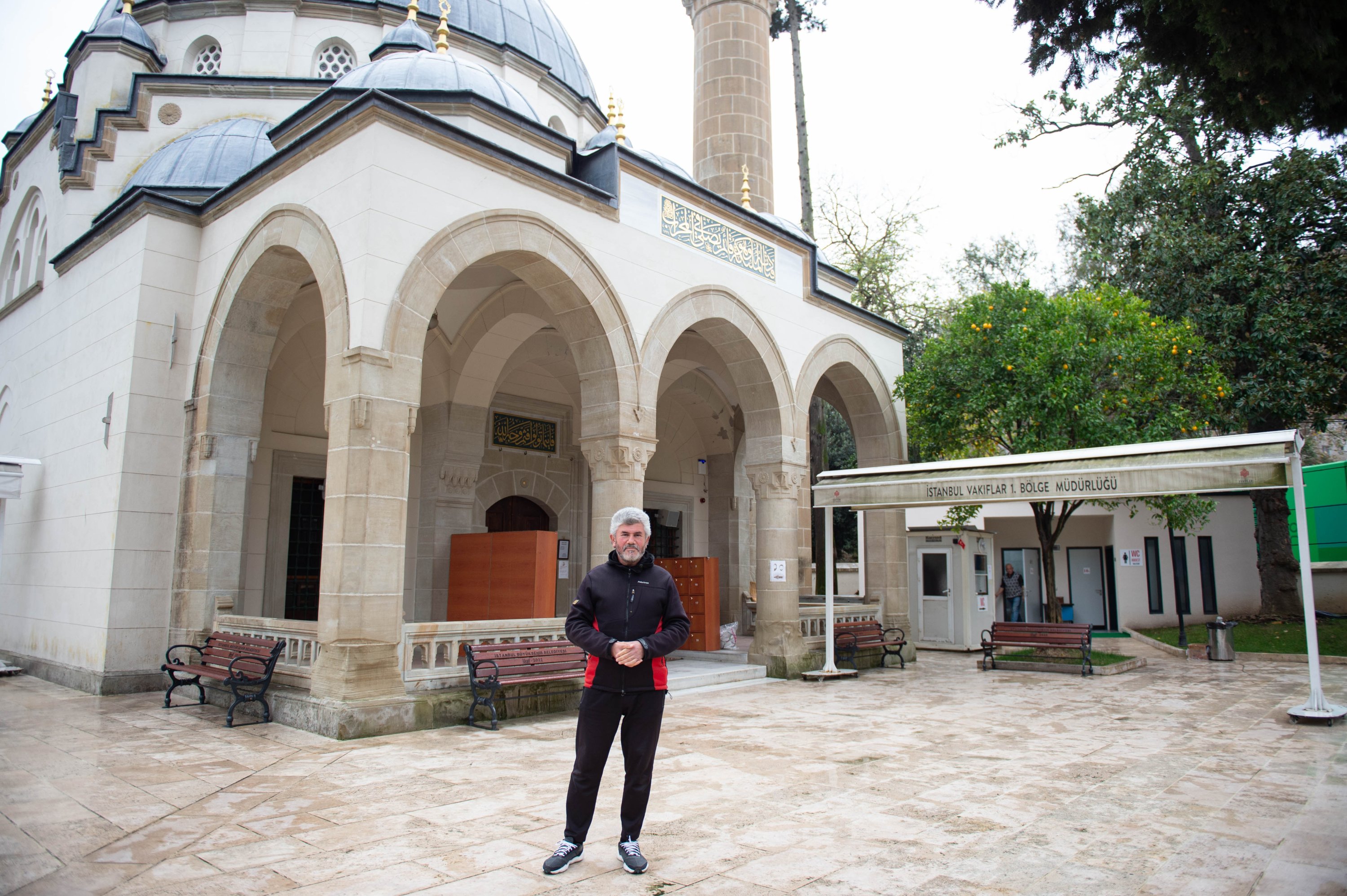 Ahmet Atmaca, the imam of the historic Bebek Mosque, stands in the mosque courtyard, Istanbul, Türkiye, Dec. 10, 2025. (Photo by Sabah's Ceyda Cengiz)