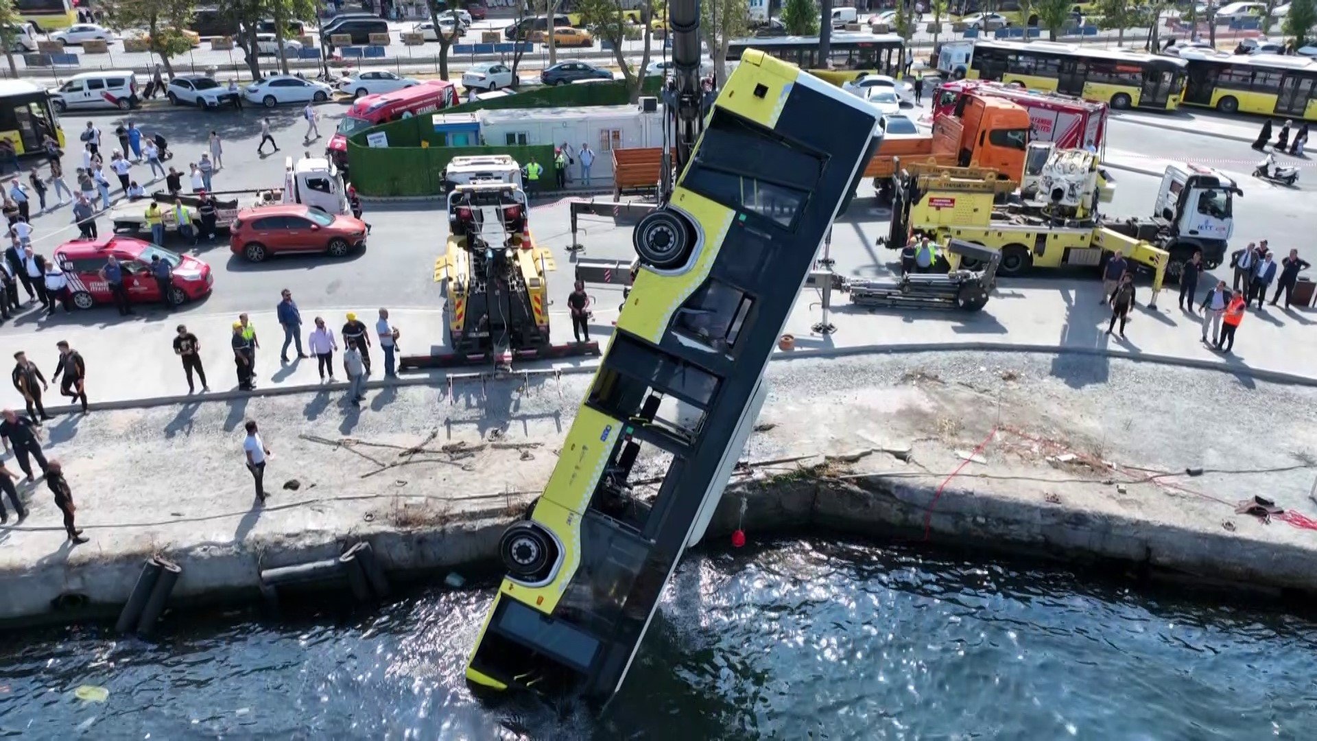 A passenger bus, plunged into the Marmara Sea in Istanbul's Eminönü district early Thursday, has been pulled out of the sea with the help of a crane after 6 hours of work.