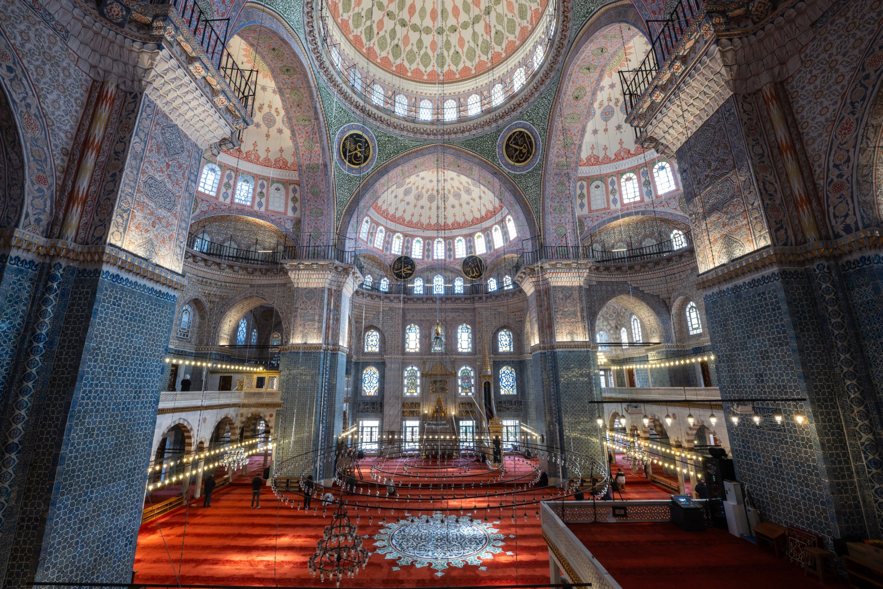Inside the structure, visitors encounter Iznik tiles, intricate marble craftsmanship and painted ornamental decorations, all of which illustrate the artistic traditions of the Ottoman period. The decorative elements demonstrate a refined aesthetic while maintaining the classical architectural style.