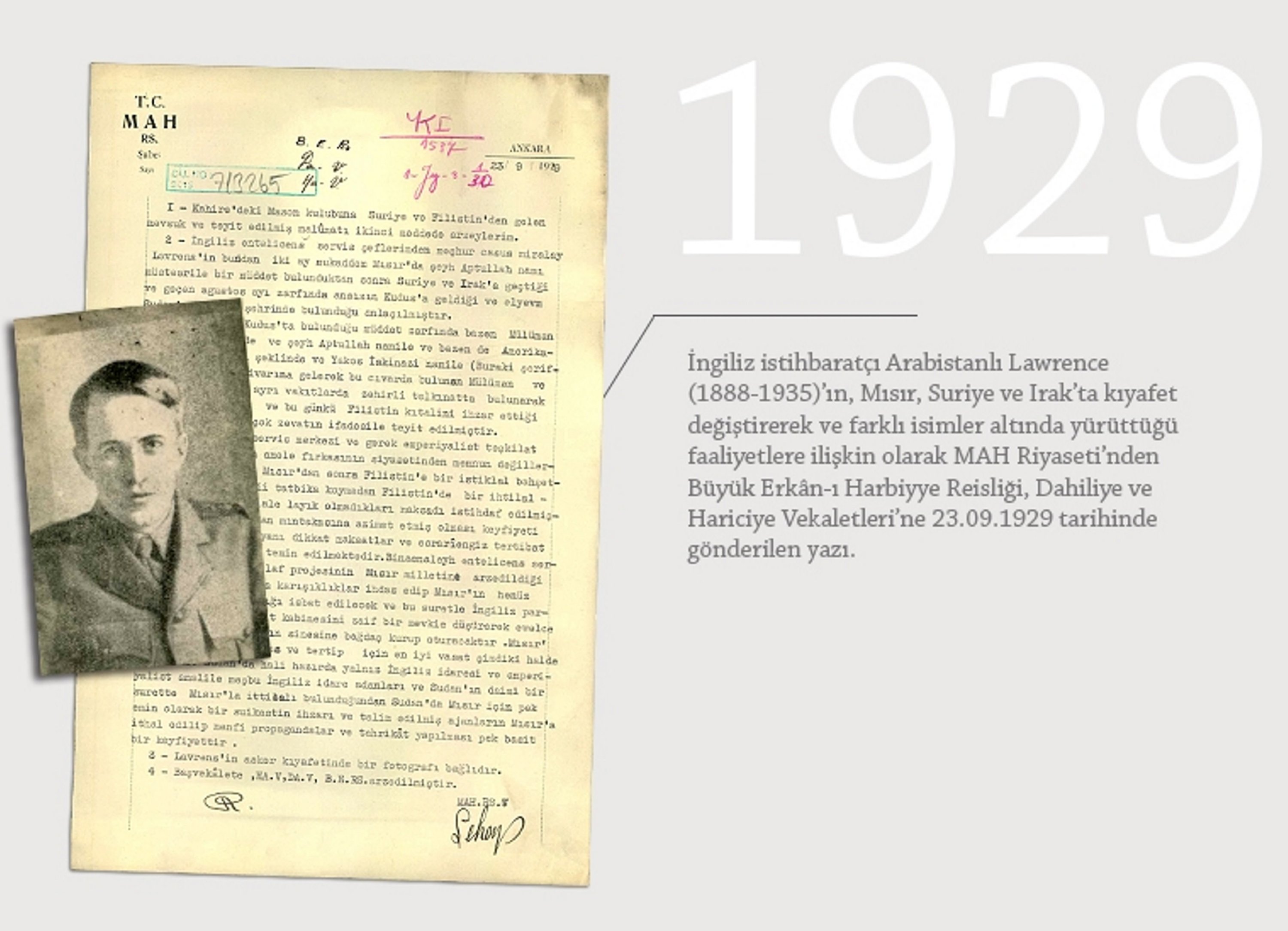 Türkiye’s National Intelligence Organization (MIT) on Tuesday published an archival intelligence document concerning British officer and intelligence figure Thomas Edward Lawrence, widely known as "Lawrence of Arabia.”