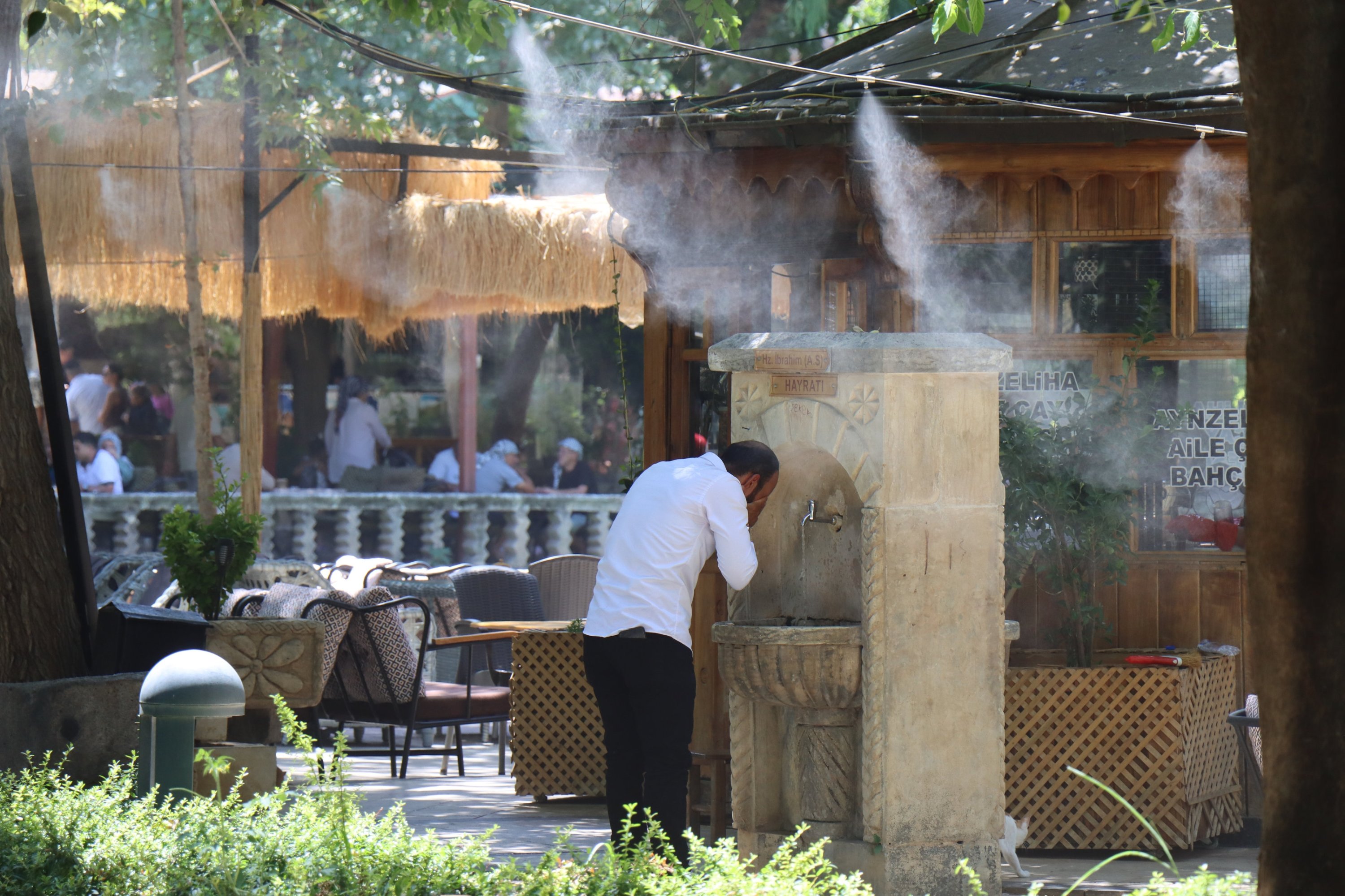 Customers cool off with steam sprays and water taps as thermometers reach 51 degrees Celsius (123.8 degrees Fahrenheit), Şanlıurfa, Türkiye, Aug. 10, 2025. (AA Photo)