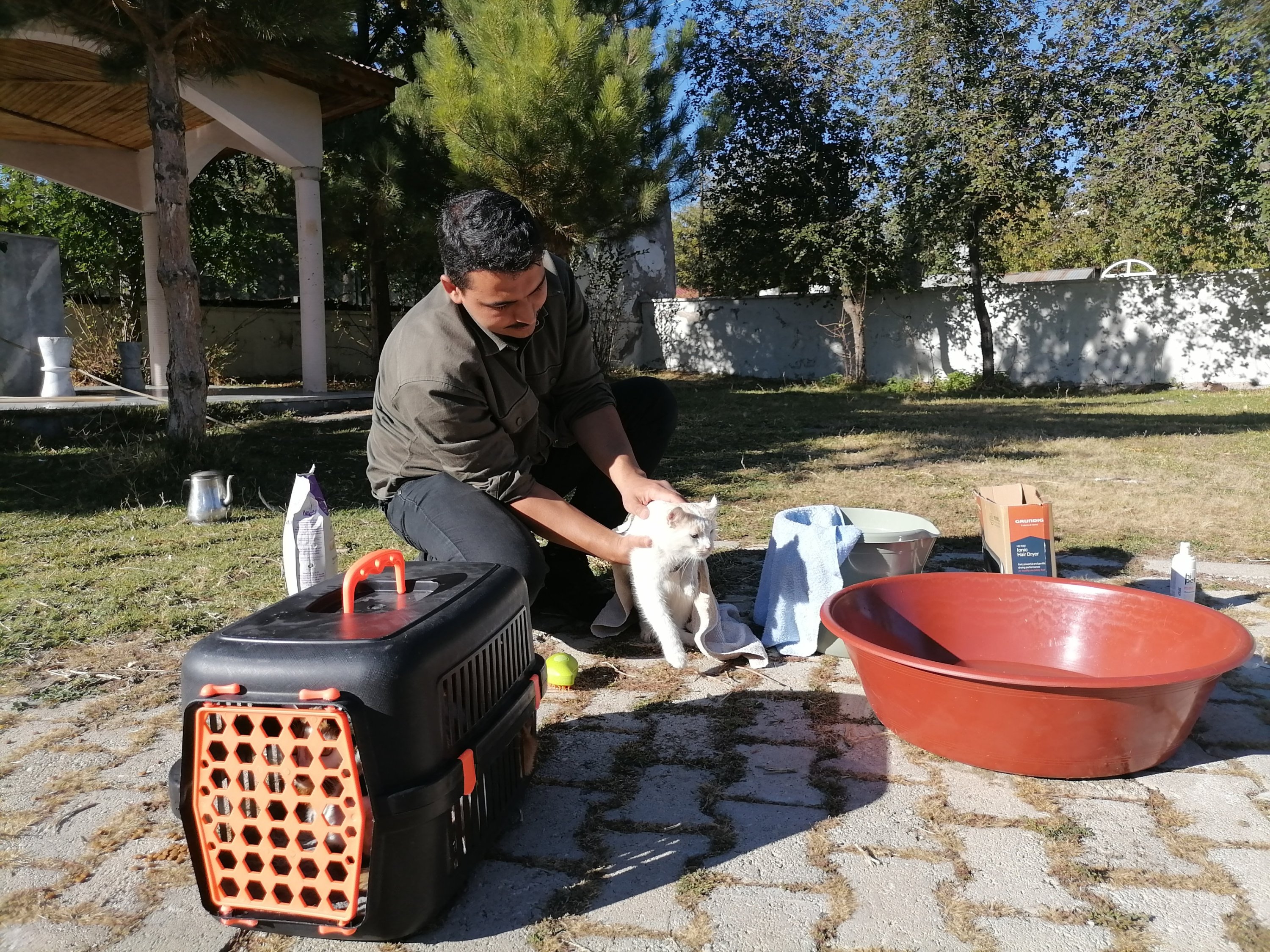In Erzurum, eastern Türkiye, an imam who gently bathes the cats he cares for is setting an example with his love for animals.