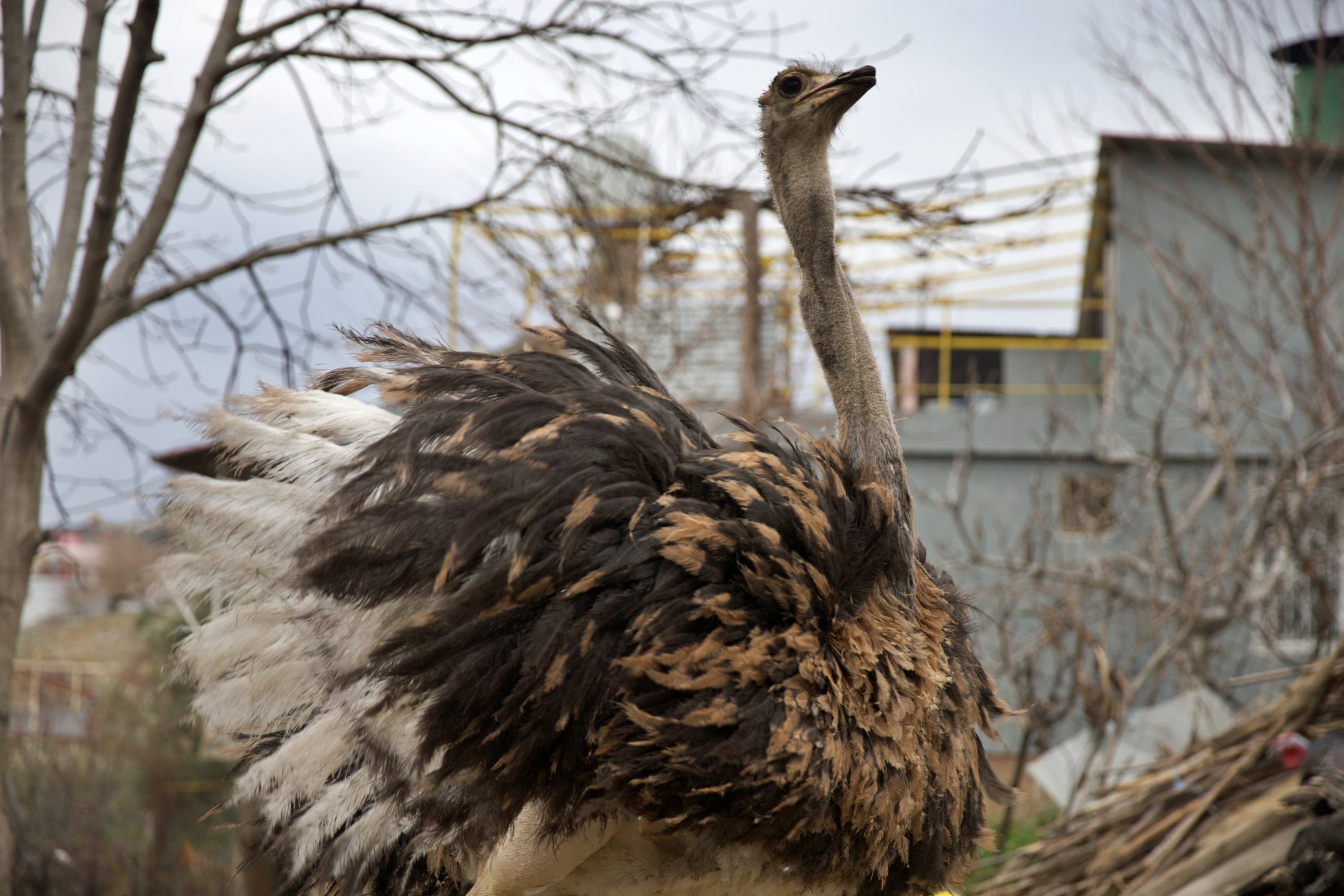 Kılıç said he personally takes care of the three ostriches, including one female.