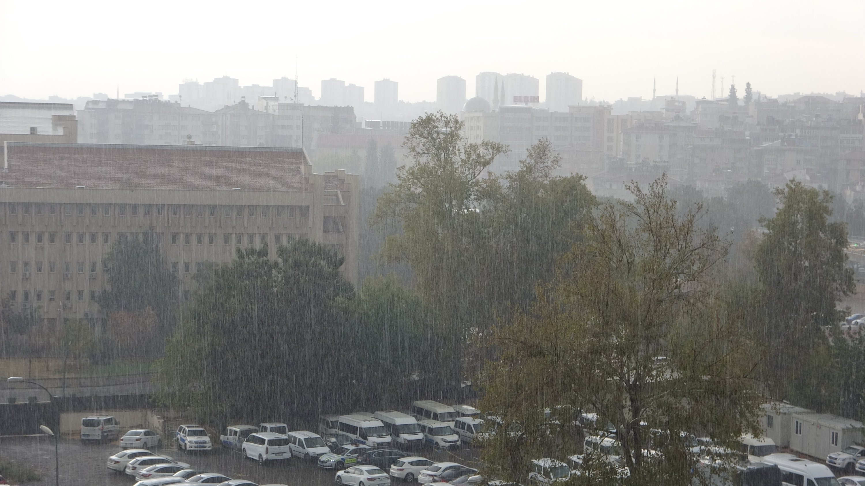 Heavy rain pours over city streets and infrastructure, causing localized flooding, Gaziantep, Türkiye, Nov. 13, 2025. (IHA Photo)