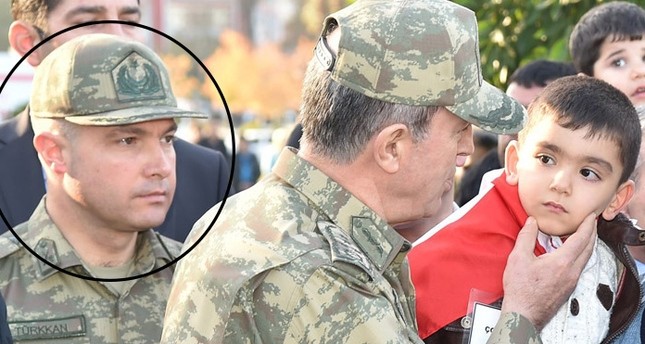 In this file photo, Lt. Cl. Levent Türkkan is pictured beside Turkey's Chief of Staff Hulusi Akar