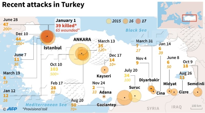 Here is a list of the attacks perpetrated by Daesh inside Turkish borders or specifically targeting the country: