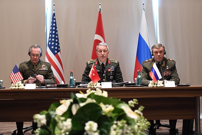 Turkish military Chief of Staff General Hulusi Akar met Tuesday with his American and Russian counterparts General Joseph Dunford and General Valery Gerasimov in southern Turkey's Antalya.
