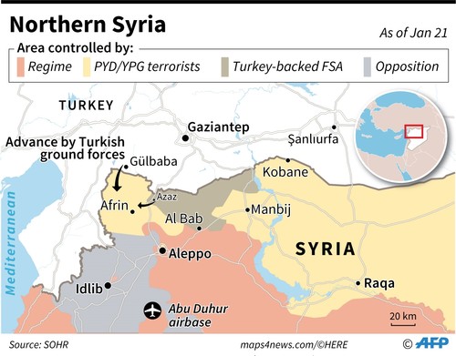 The operation was launched on Saturday, targeting the PKK terror group's Syrian affiliates the Democratic Union Party (PYD) and its armed wing People's Protection Units (YPG) as well as the remaining Daesh elements in Afrin region on Turkish-Syrian border.