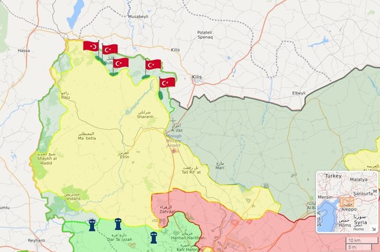 Turkish military and Free Syrian Army (FSA) fighters cleared Zaytunak, Sorani, Heyyani, Sharqanli and Arab Wiran villages from PKK-affiliated People's Protection Forces (YPG) terrorists in northern parts of Syria's Afrin region, Anadolu Agency said Tuesday.