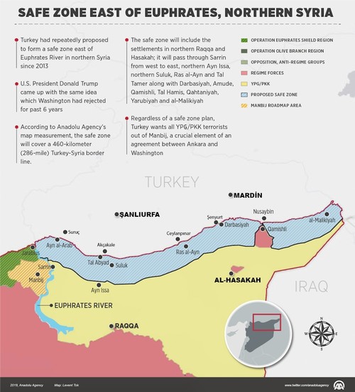 By establishing the safe zone, Turkey's aims to prevent damage caused by Syrian regime attacks, to avoid terrorist organizations from flourishing in the country, provide a safe area for Syrian people and stem migration. President Recep Tayyip Erdoğan said on Tuesday that Turkey and the U.S.- led coalition will set up a safe zone, which Turkey has long called on its allies to support. "The safe zone issue, including one along Turkey's borders to be formed by us, is something I have discussed since the Obama era. It was reiterated by him [Donald Trump] as 20 miles [32.19 kilometers]," he said and added that the zone could be extended further.