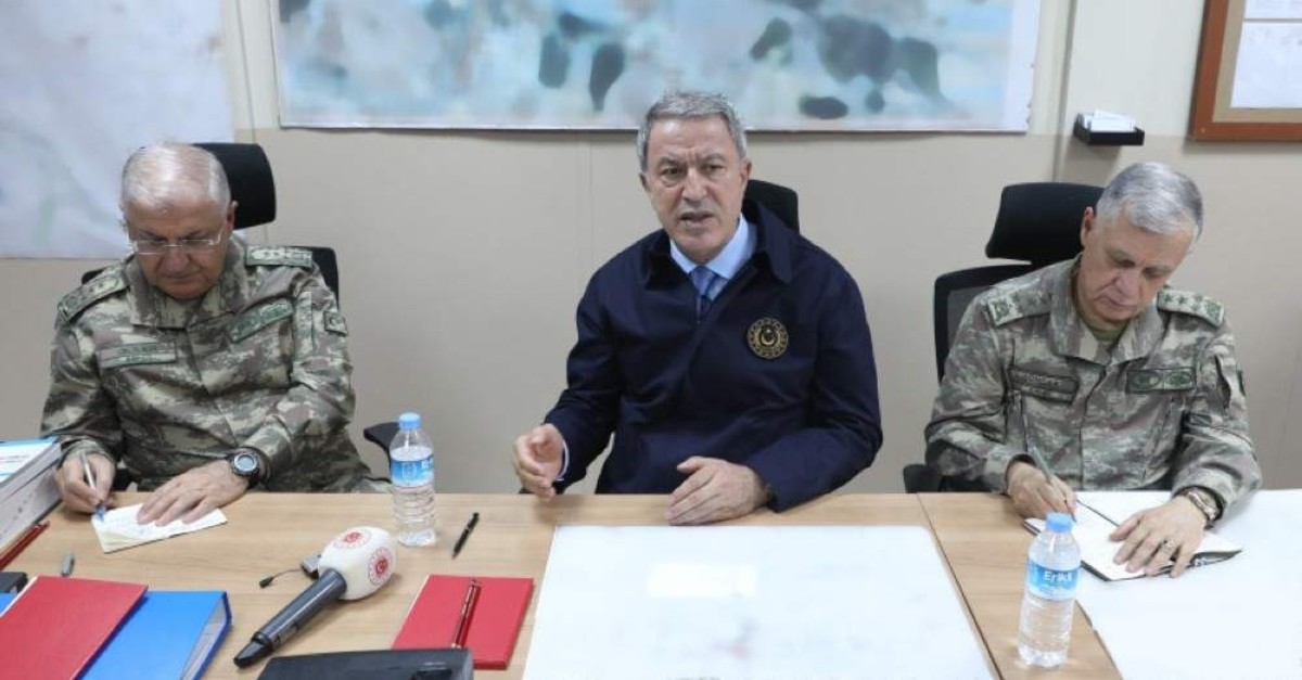 Defense Minister Hulusi Akar told Turkish troops in Syria’s Tal Abyad to be prepared for everything, as he told them that Turkey’s Operation Peace Spring is not formally over. Akar was visiting the directing point in southeastern Şanlıurfa province near the Syrian border with Chief of Staff Gen. Yaşar Güler and Land Forces Commander Gen. Ümit Dündar. Speaking through a transmitter, Akar asked the soldiers in Tal Abyad about how they were doing. The latter responded by saying that they are prepared for all duties and have an extremely high motivation. The minister noted that security and defense are constantly needed to preserve peace and stability in the country, while he emphasized Turkey’s goal to protect the rights of Syrian people.