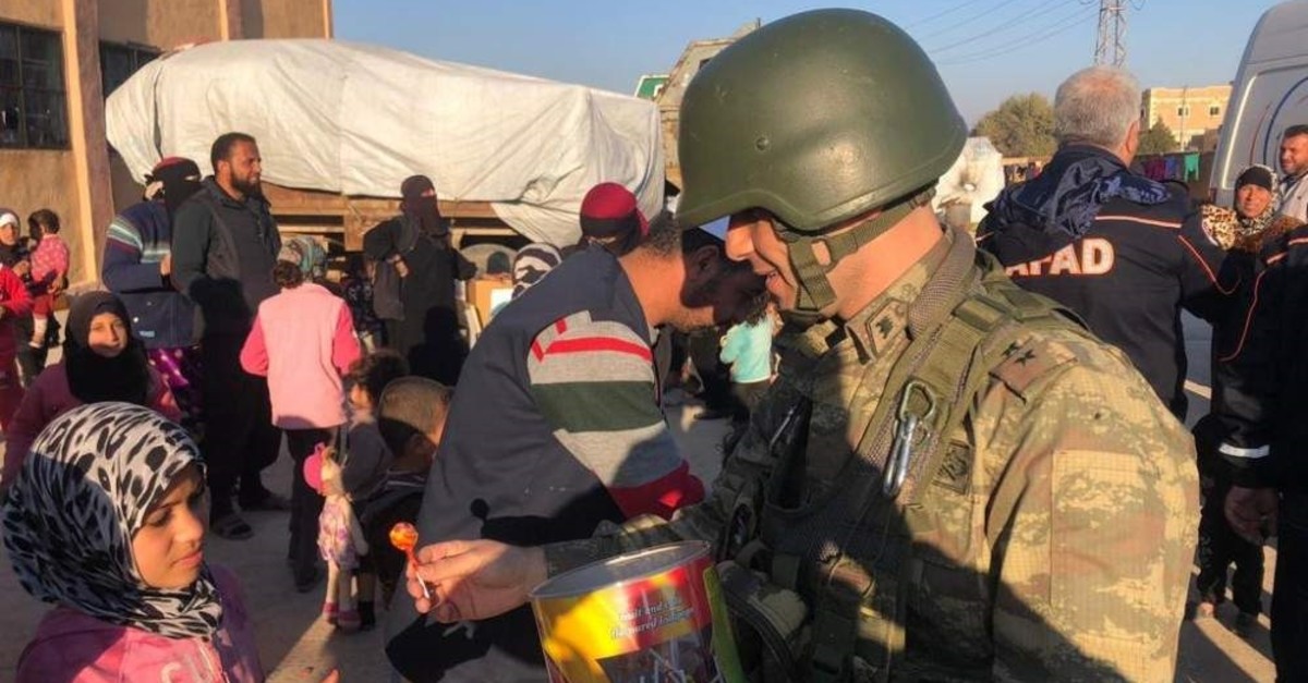 On Wednesday, the ministry shared another video showing Turkish soldiers distributing food and blankets to people fleeing from YPG oppression in Deir el-Zour to Tal Abyad. The distribution of humanitarian aid was carried out in coordination with the Turkey's Disaster and Emergency Management Authority (AFAD).