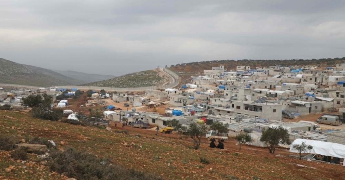A picture taken on Feb. 21, 2020 shows makeshift homes at an informal camp for the displaced in Kafr Lusin village on the border with Turkey in Syria's northwestern province of Idlib. (AFP Photo)