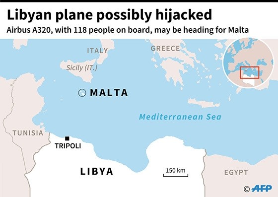 The Airbus A320 was flying inside Libya for state-owned airline Afriqiyah Airways with 118 people - 111 passengers and 7 crew - aboard, the reports said. The two hijackers, reportedly carrying two hand grenades, had threatened to blow the plane up. Maltese Prime Minister Joseph Muscat tweeted: "Informed of potential hijack situation of a #Libya internal flight diverted to #Malta. Security and emergency operations standing by -JM".