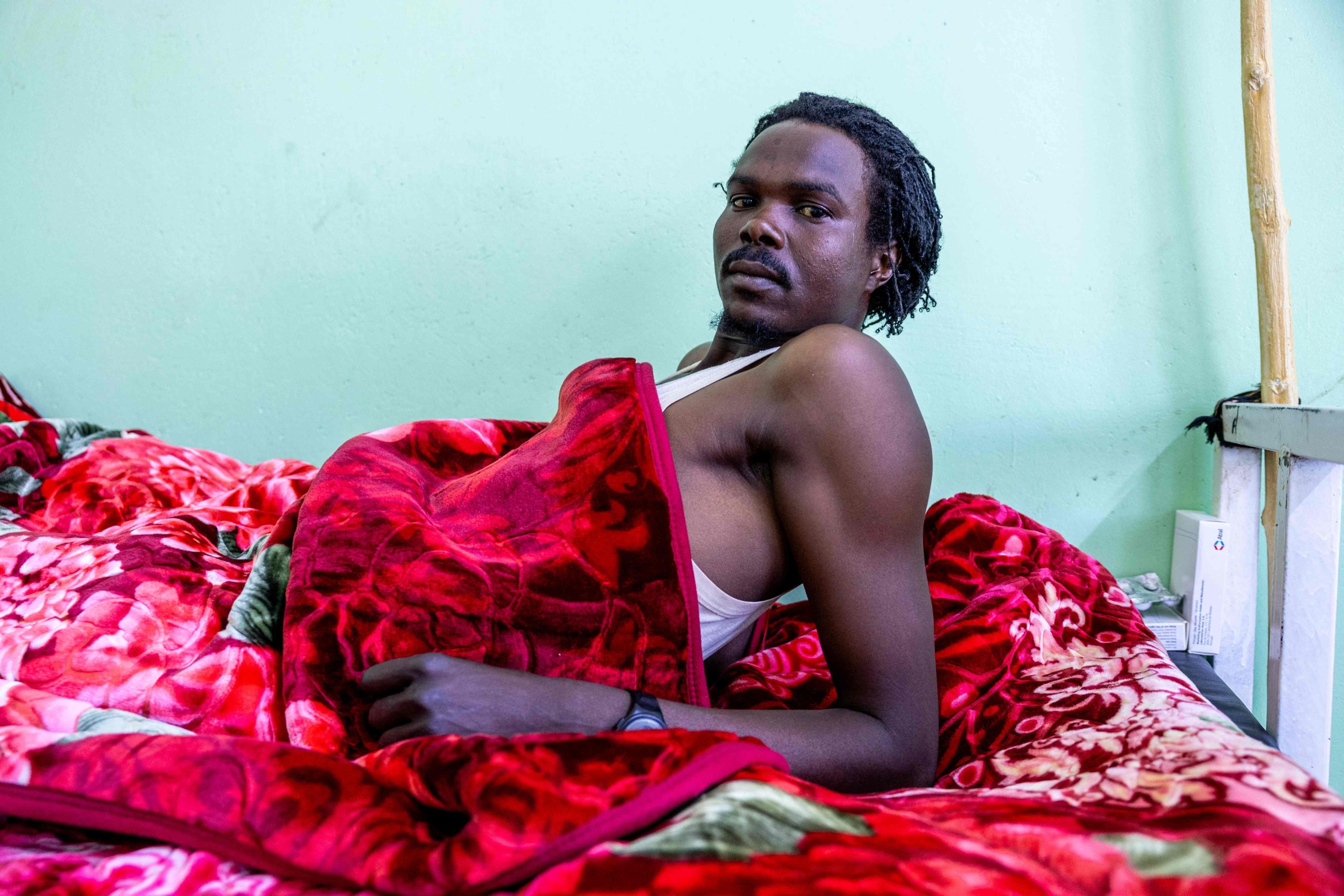 The 33-year-old, who fled his native Sudan as war erupted nearly three years ago, had just had a 5-millimeter metal fragment removed from his skull.