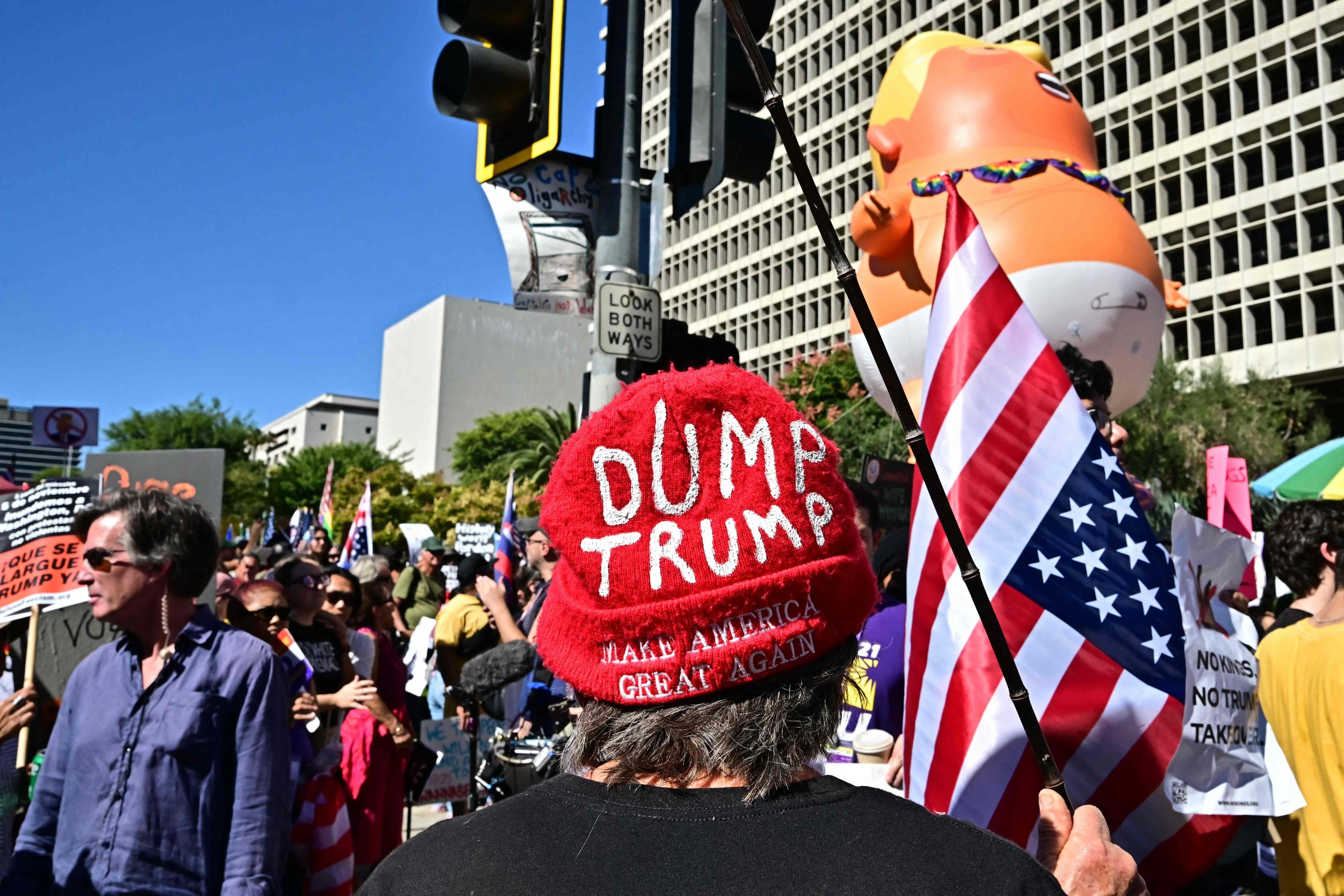 In Los Angeles, protesters floated a giant balloon of Trump in a diaper.