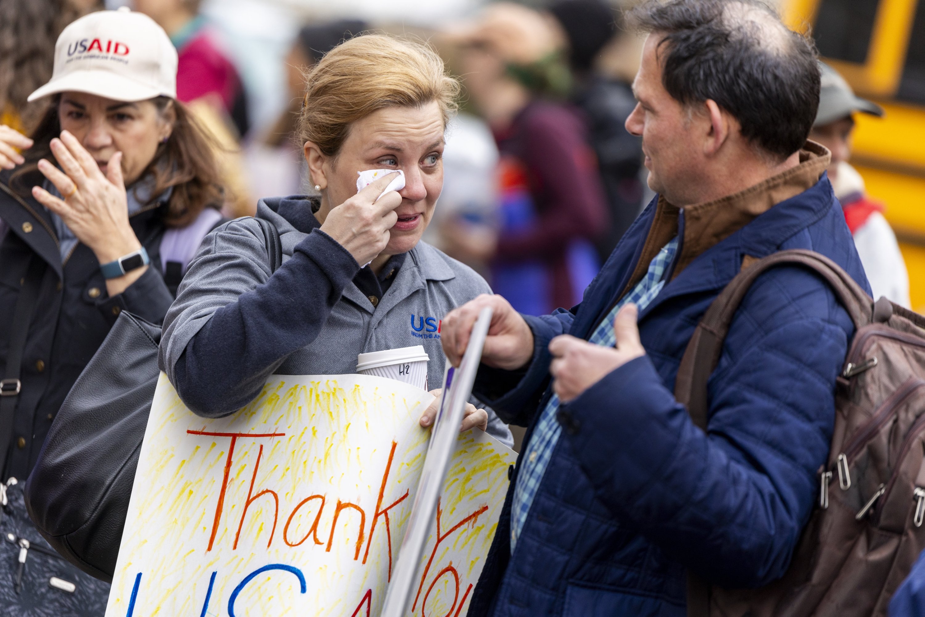 "We're just here to say thank you for your service. We appreciate everything you’ve done and all the sacrifices you've made in service to your country," said Randy Chester, vice president of the American Foreign Service Association, a union representing USAID staffers.