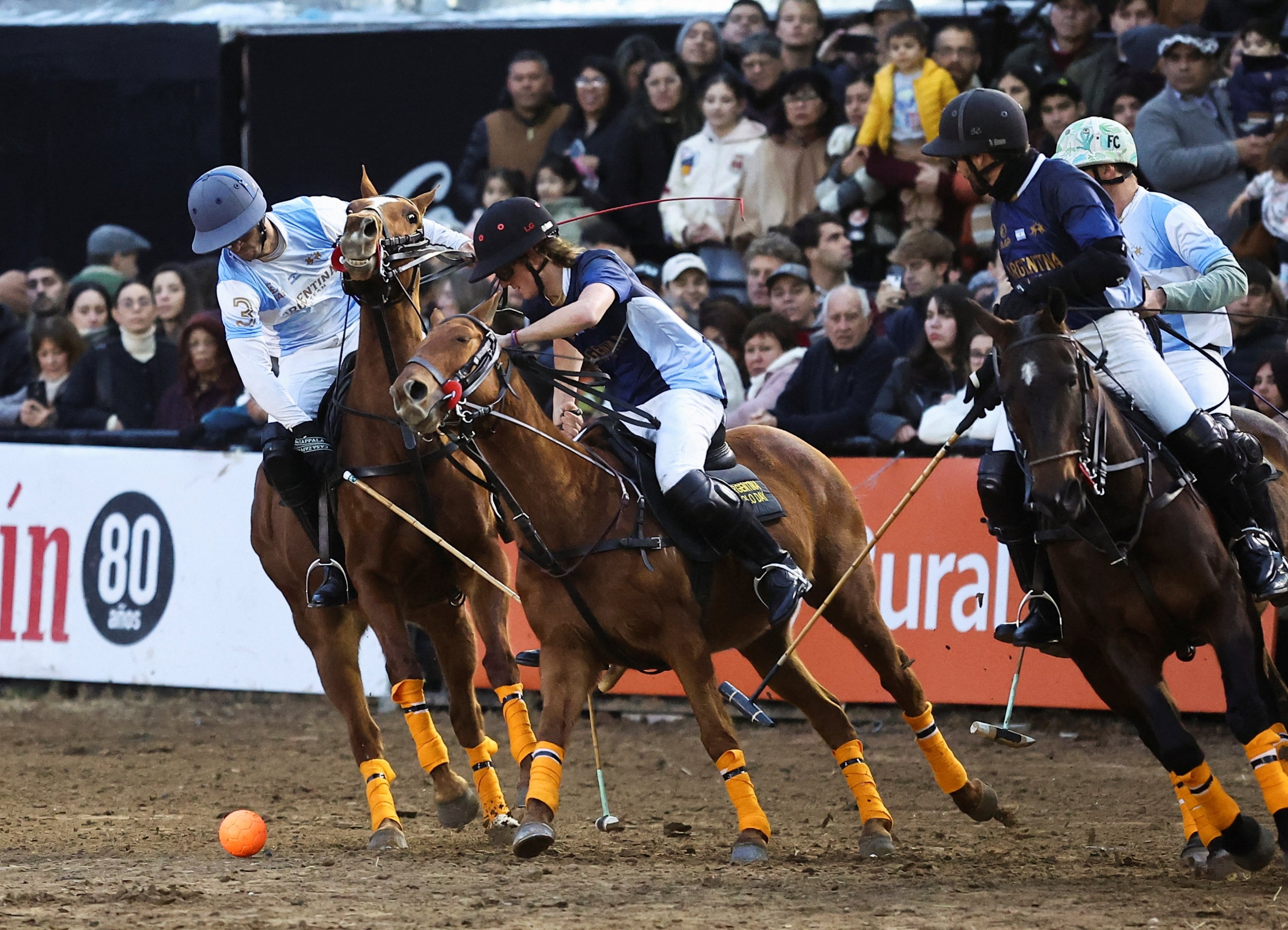 Polo, which originated in Central Asia, was brought to Argentina by British immigrants, who founded the first polo club in Buenos Aires in 1882. It's somewhat like hockey on horseback, where two teams of four people each sweep long mallets to drive a ball through goal posts.