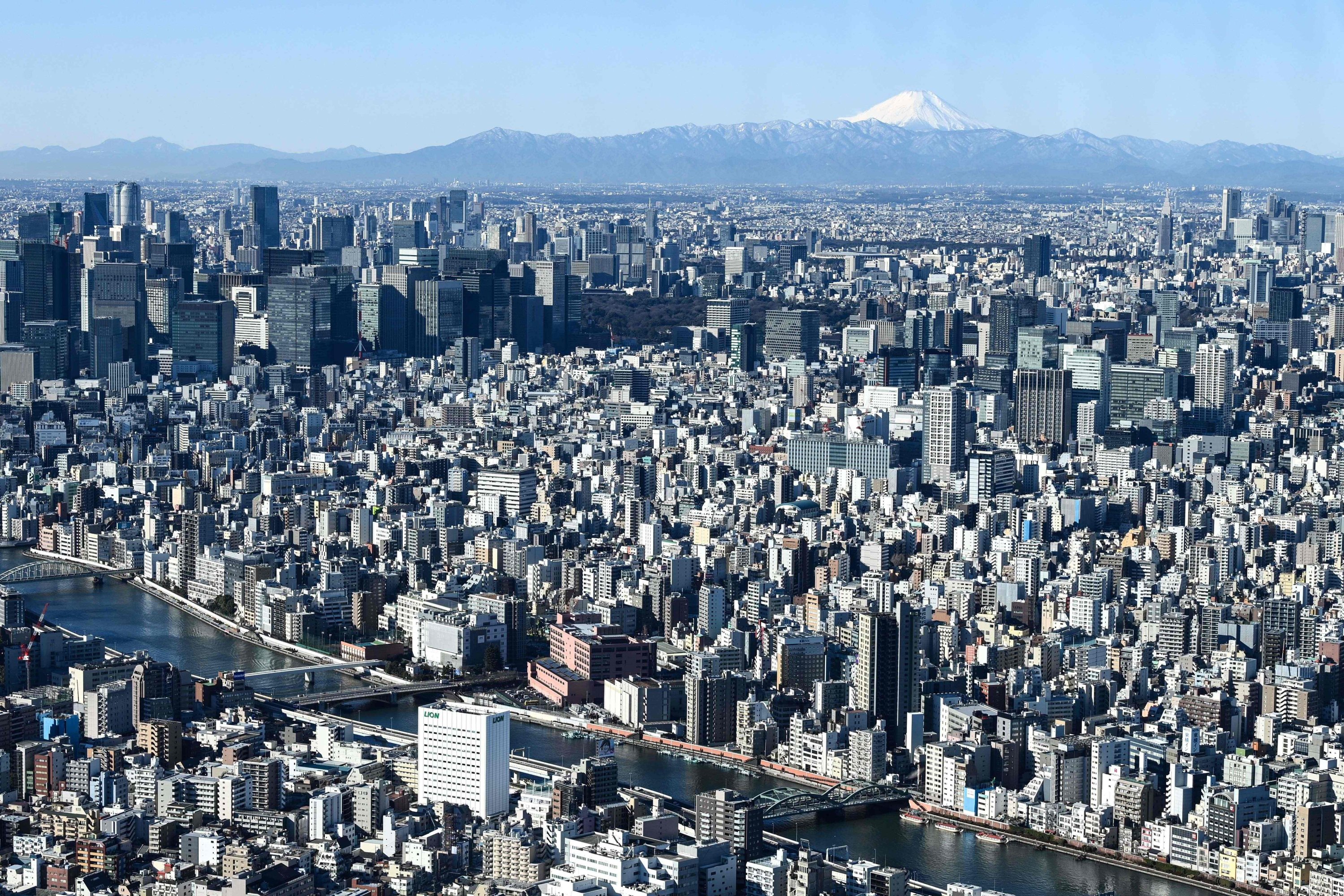 A general view of the Japanese capital Tokyo backdropped by Mount Fuji, Japan's highest mountain, Jan. 30, 2021. (AFP Photo)