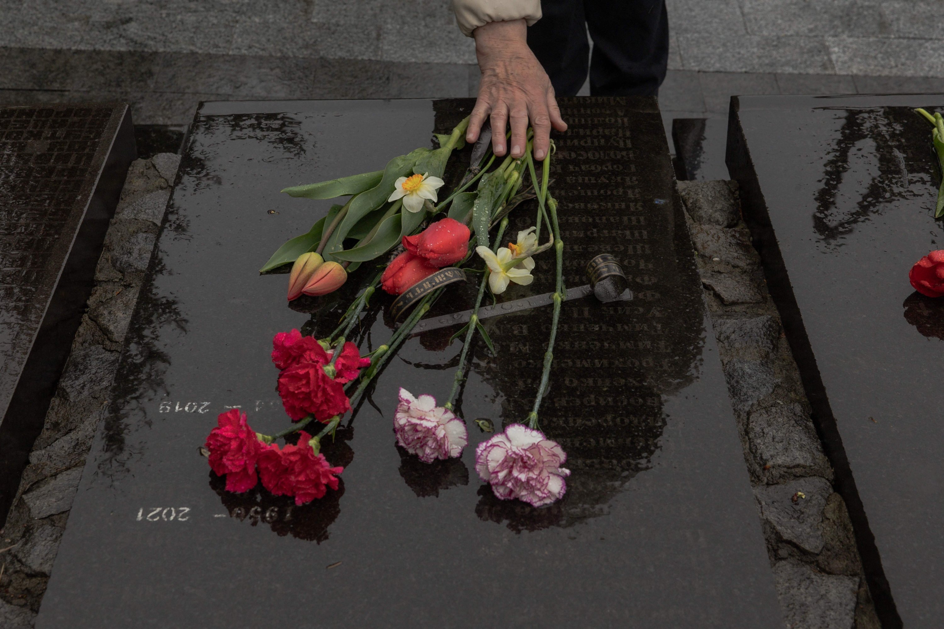 A woman touches flowers at a memorial for the victims of Chernobyl, on the 40th anniversary of the explosion at the nuclear power plant, in Kyiv, Ukraine, April 26, 2026. (AFP Photo)