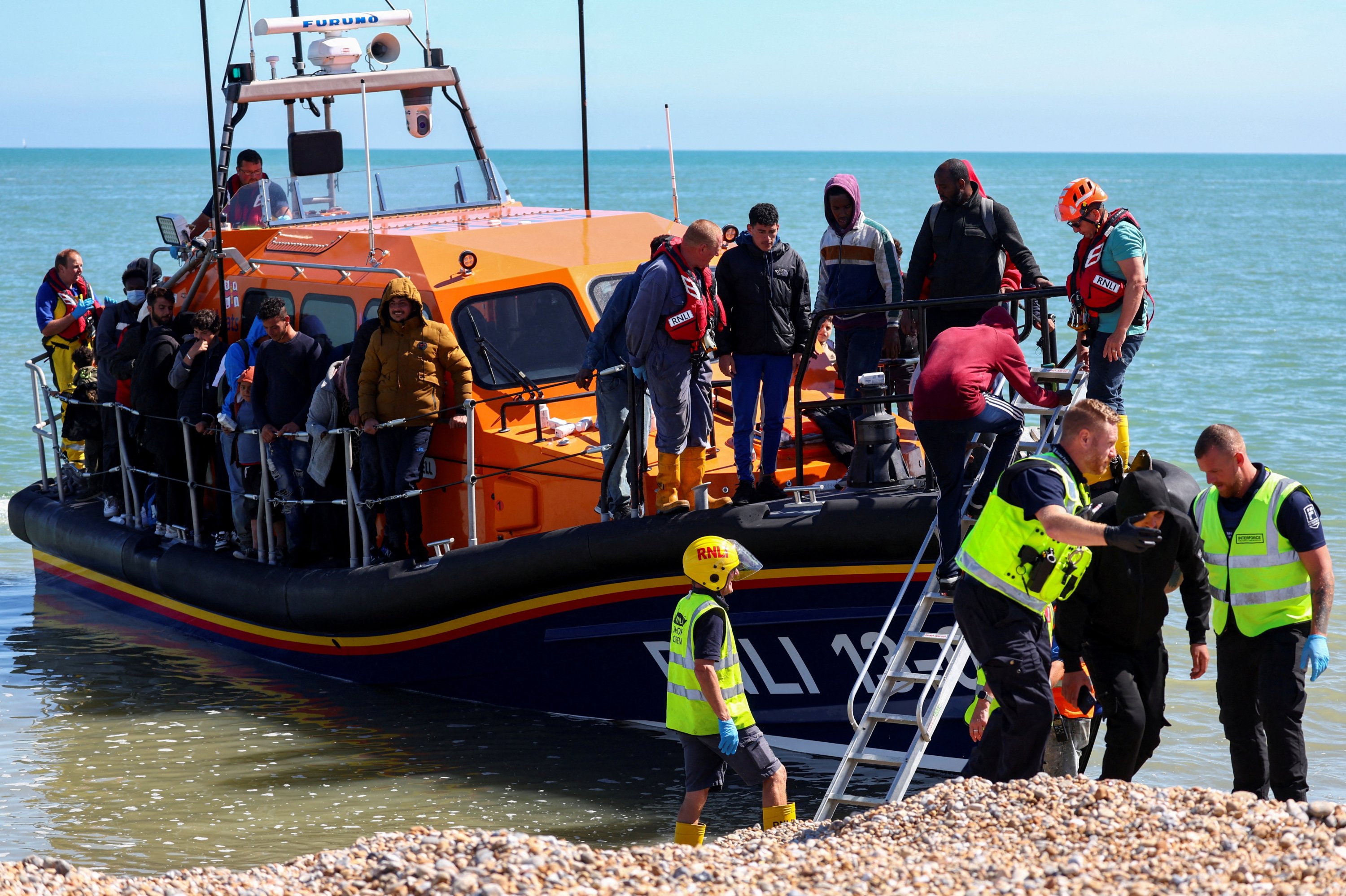 People, believed to be migrants, arrive on a lifeboat in Dungeness, Britain, Aug. 16, 2023. (Reuters File Photo)