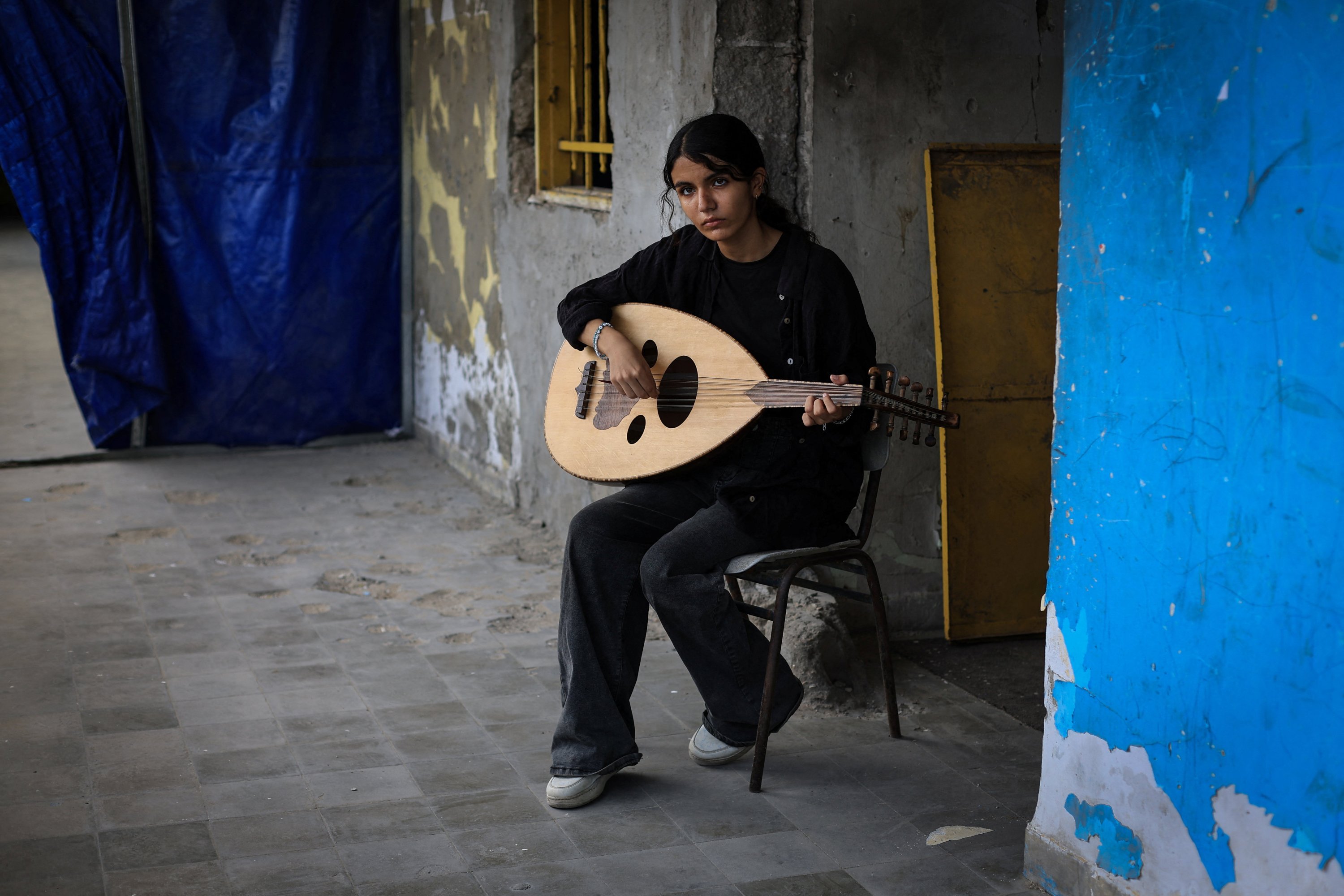 “When I play, I feel like I’m flying away,” said 15-year-old Rifan al-Qassas, who began learning the oud, an Arab lute, at age 9. “Music gives me hope and eases my fear.”
