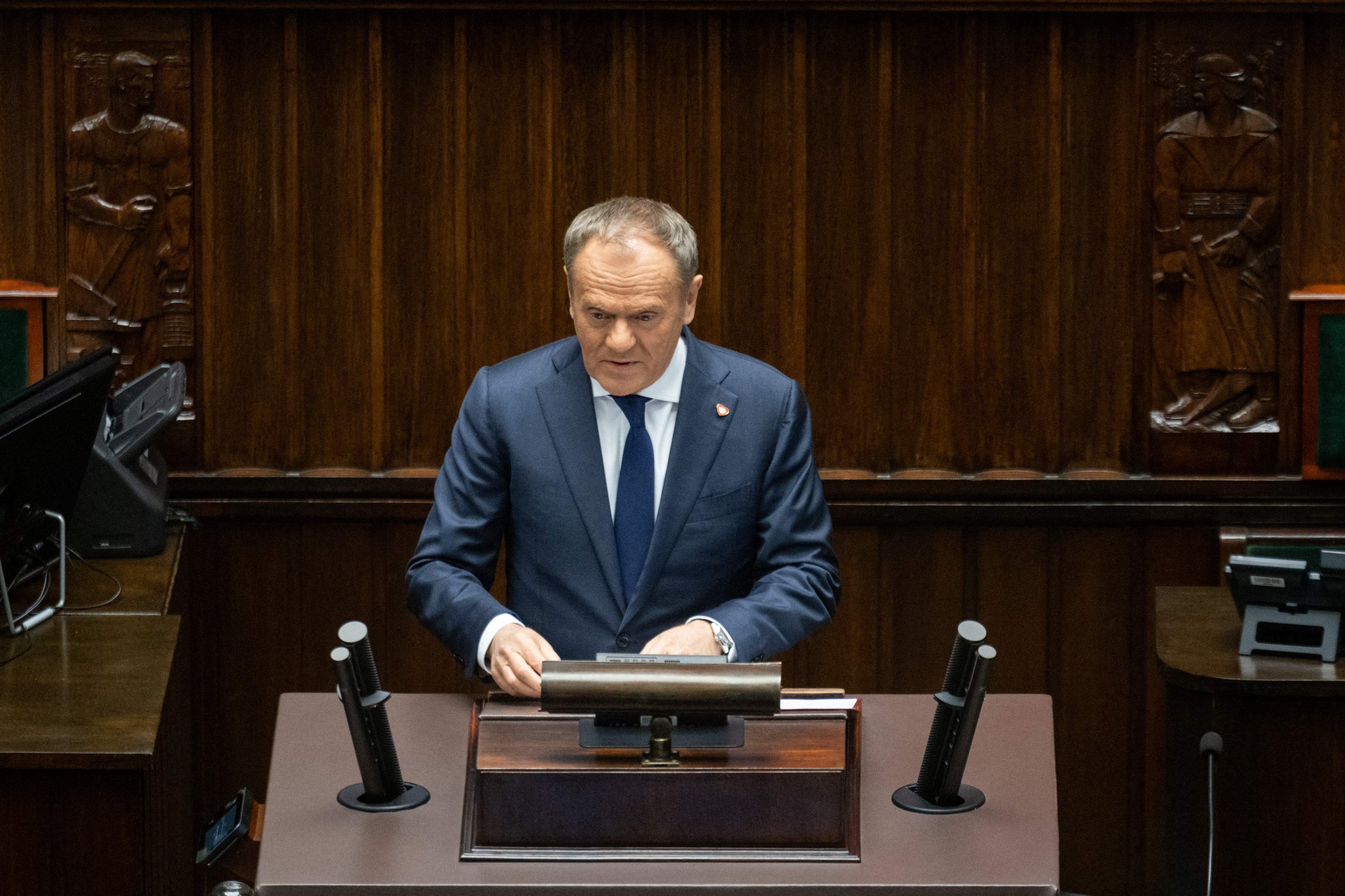 Poland's Prime Minister Donald Tusk addresses parliament on the situation in Ukraine, Warsaw, March 7, 2025. (AFP Photo)