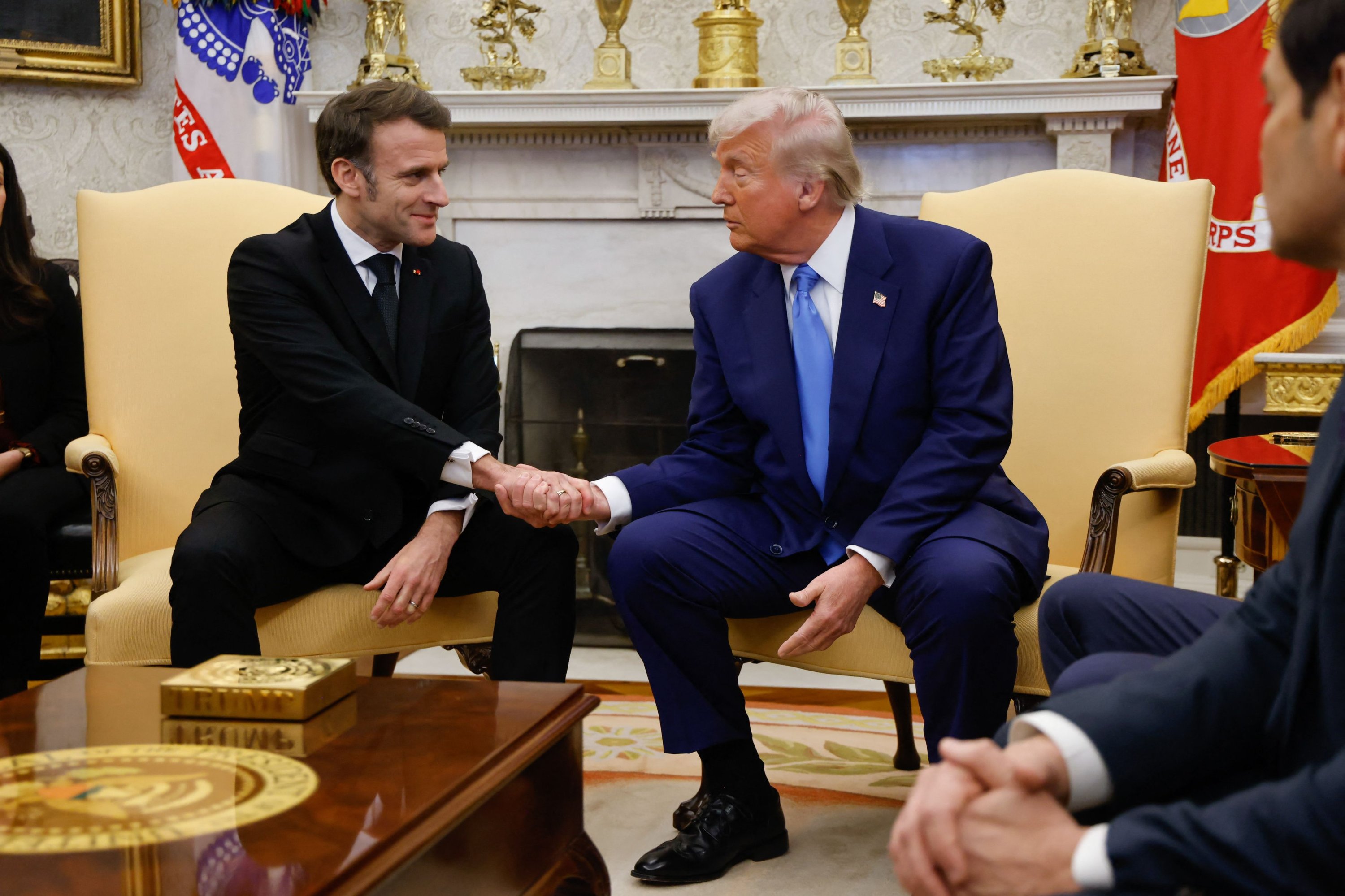 Trump hailed Macron as a "very special man" as they shared one of their trademark macho handshakes in the Oval Office – with the French president seeking to use his ties with Trump to shore up support for Ukraine.
