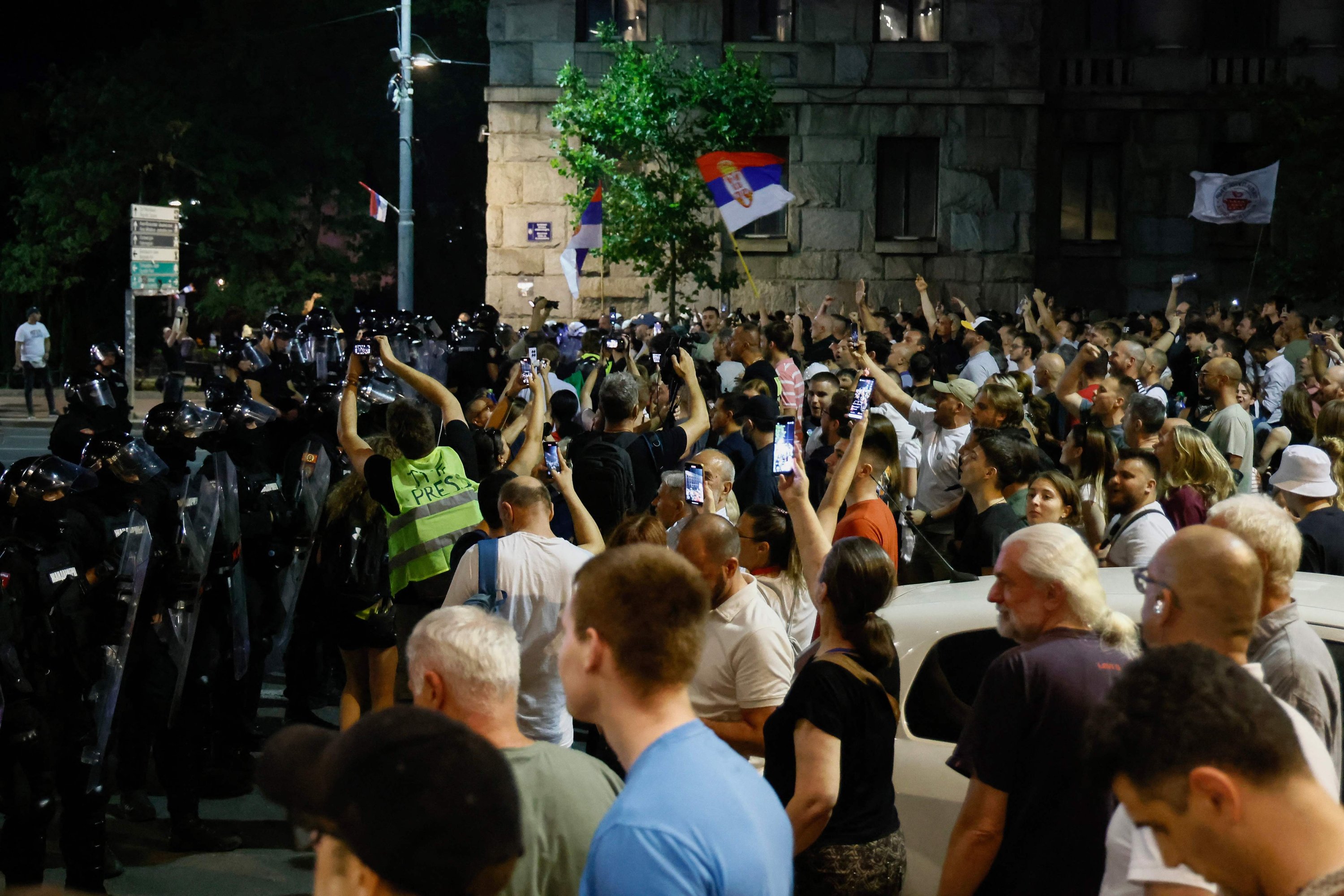 Wednesday's protests were organized in response to incidents on Tuesday evening in the northwestern town of Vrbas, where riot police separated protesters from the opposing camps outside the ruling party's offices.