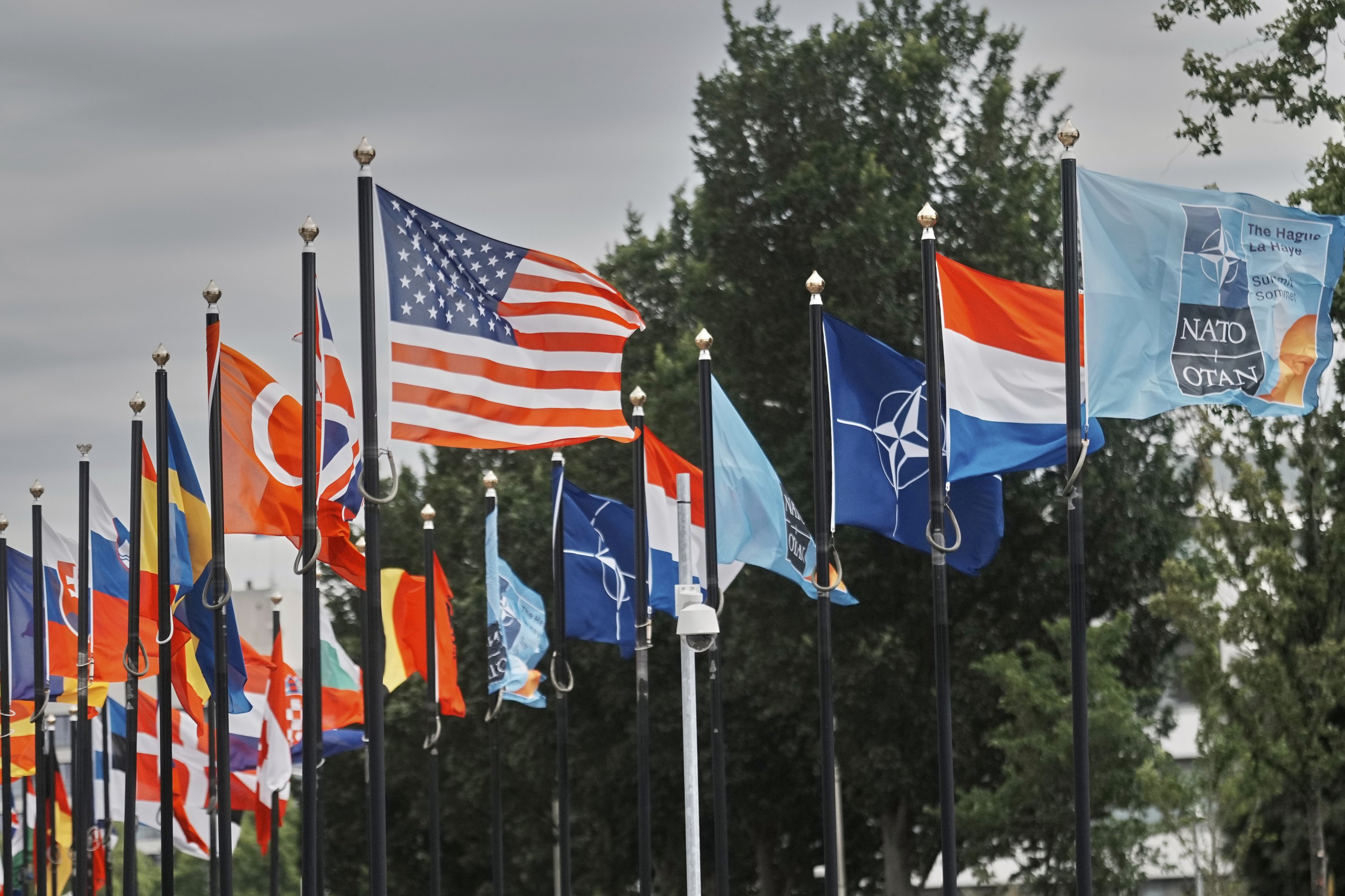 Participants' flags wave in the wind in front of the venue ahead of the NATO summit in The Hague, Netherlands, June 23, 2025. (AP Photo)