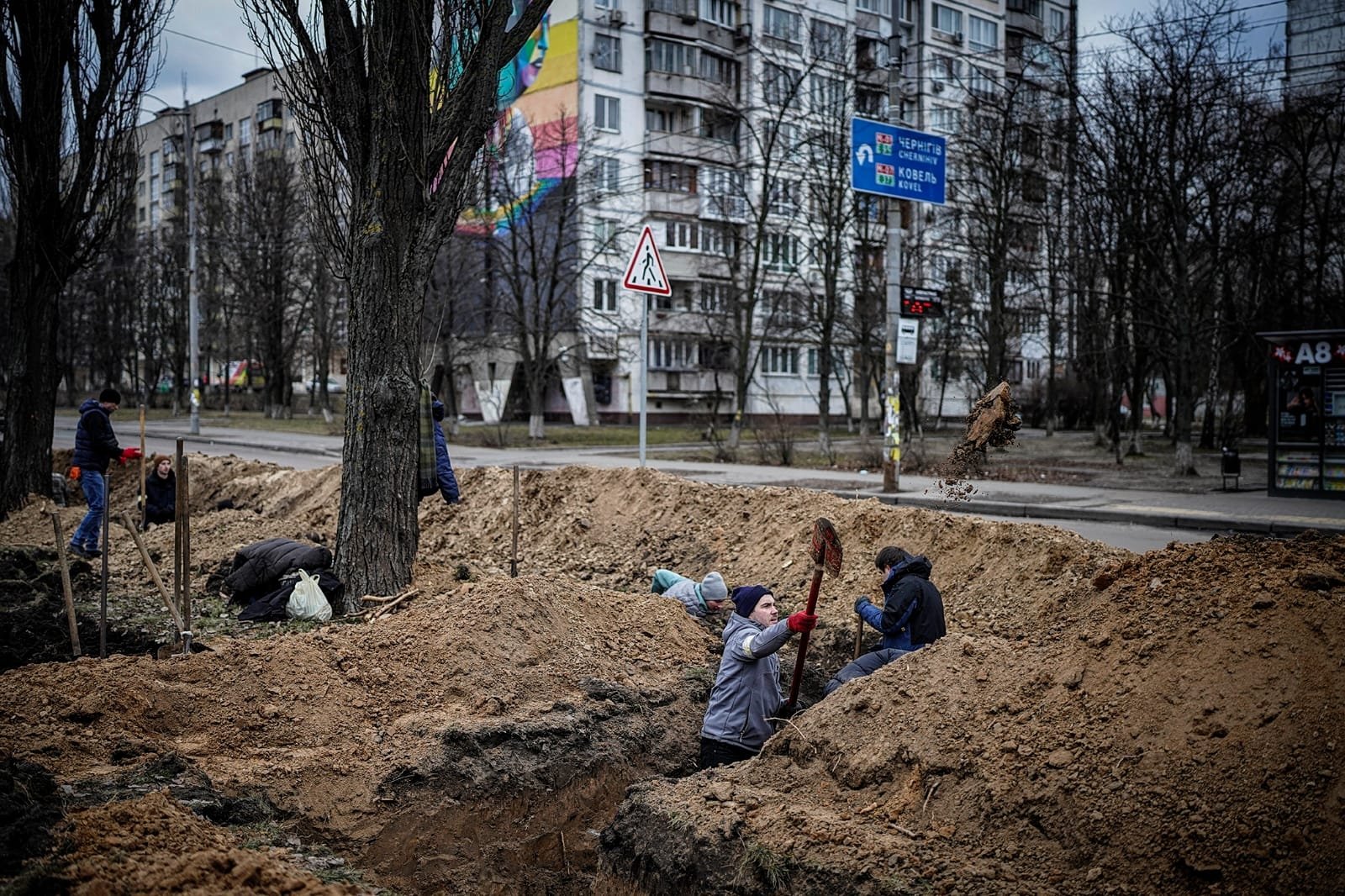 “We don’t have weapons. We decided to dig ditches and build trenches like people in other parts of Kyiv are doing. We have built trenches in collaboration, we have prepared Molotov cocktails. None of us is thinking about leaving here. We will help the Ukrainian military as much as we can, until the end,” he said.
