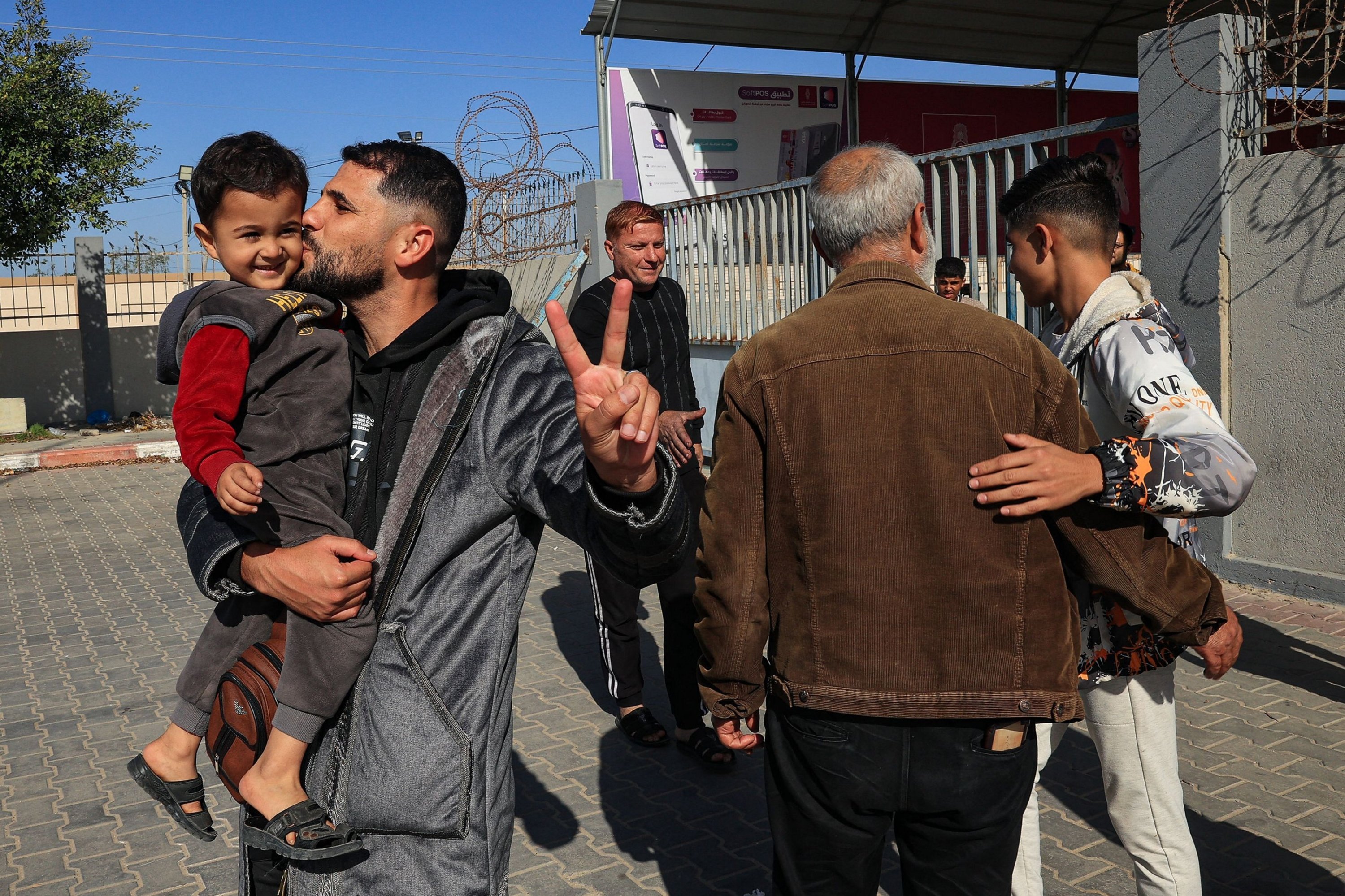 Palestinians greet relatives returning to the Gaza Strip hours after the start of a four-day truce in battles between Israel and Hamas, Gaza Strip, Palestine, Nov. 24, 2023. (AFP Photo)