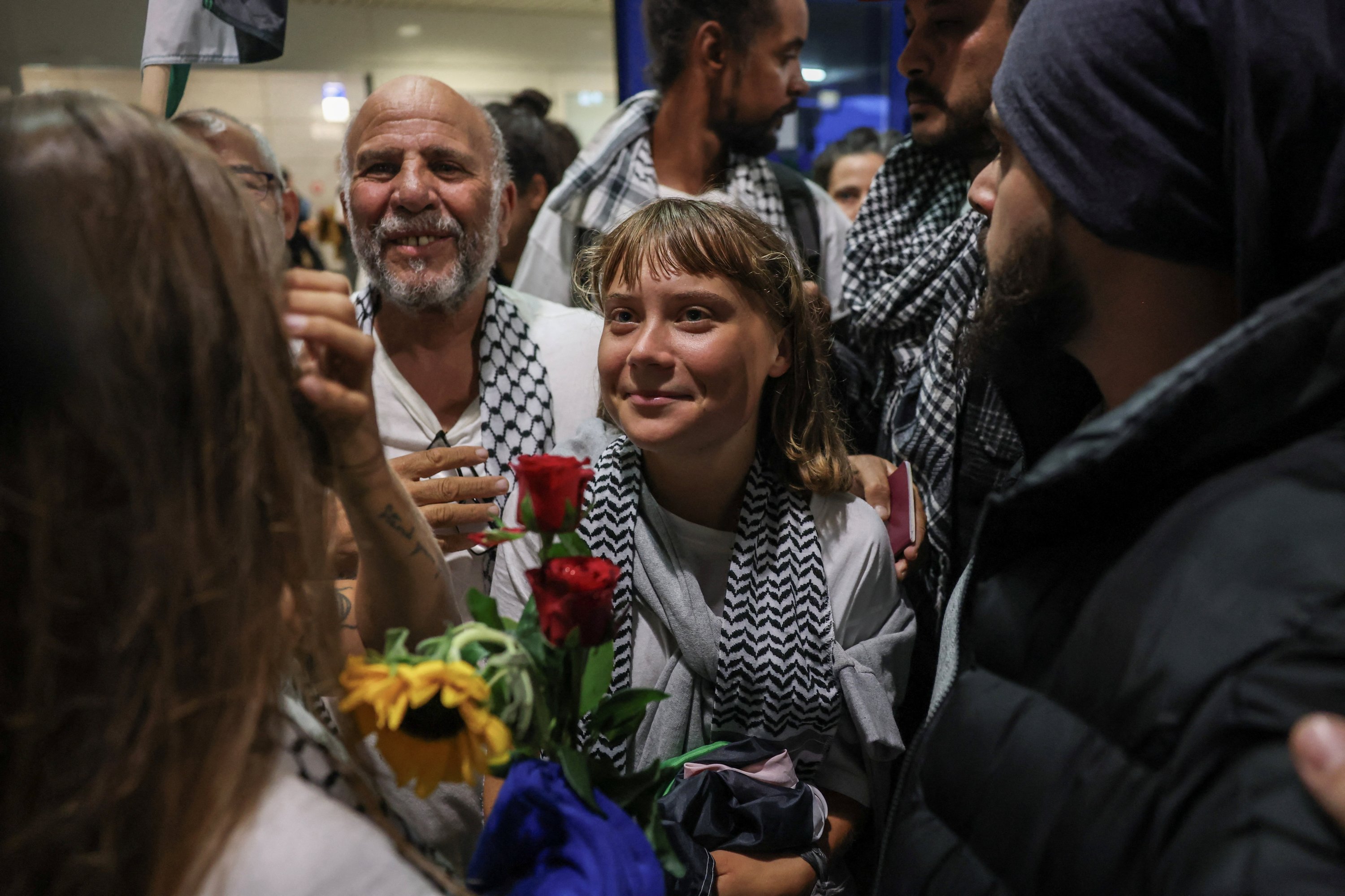 Thunberg was among 171 people deported by Israeli authorities after being detained for taking part in a Gaza-bound aid flotilla. The group was flown to Greece and Slovakia following their release.