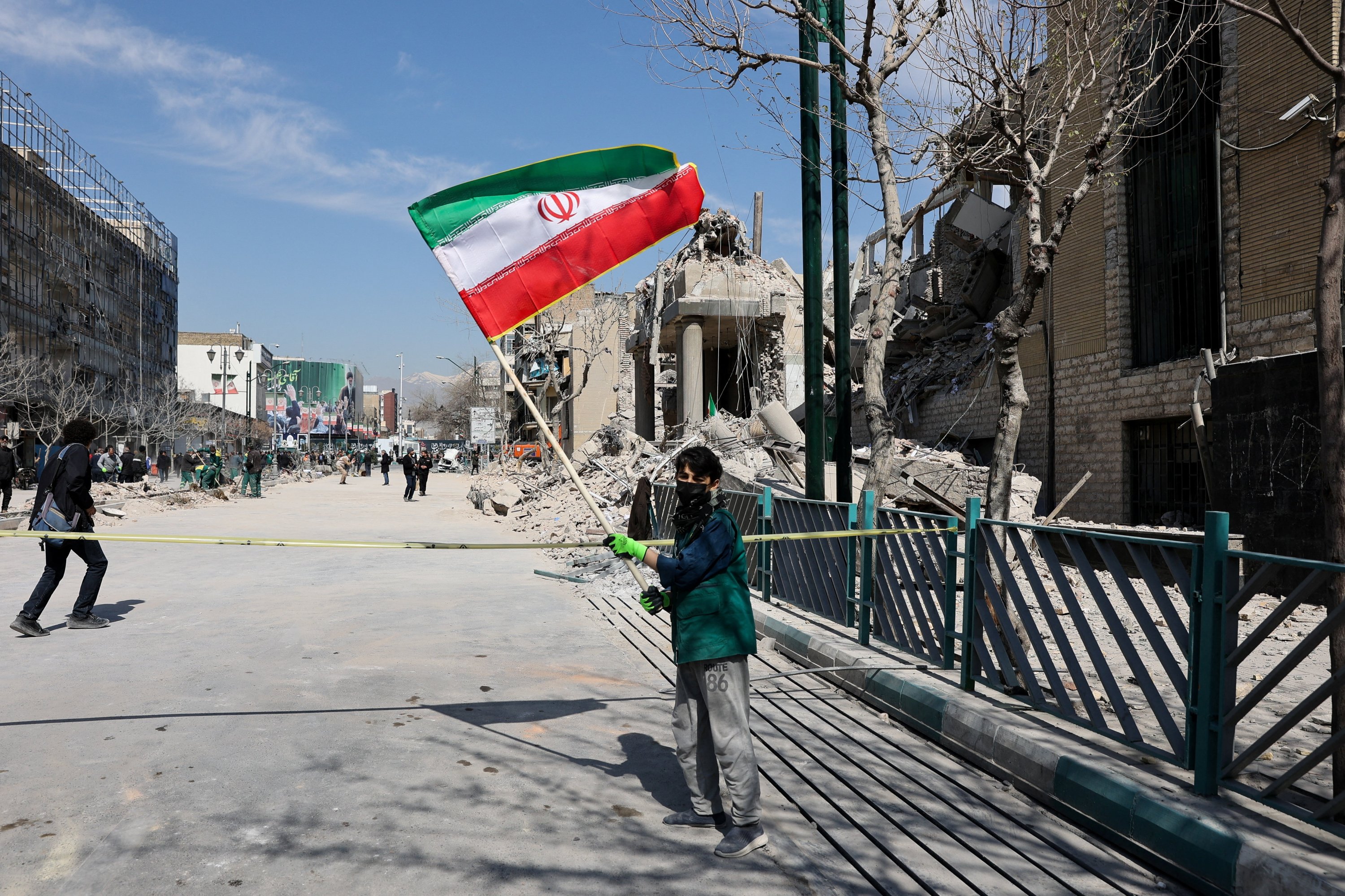 A boy holds an Iranian flag following a U.S.-Israeli strike on a police station in Tehran, Iran, March 4, 2026. (Reuters Photo)