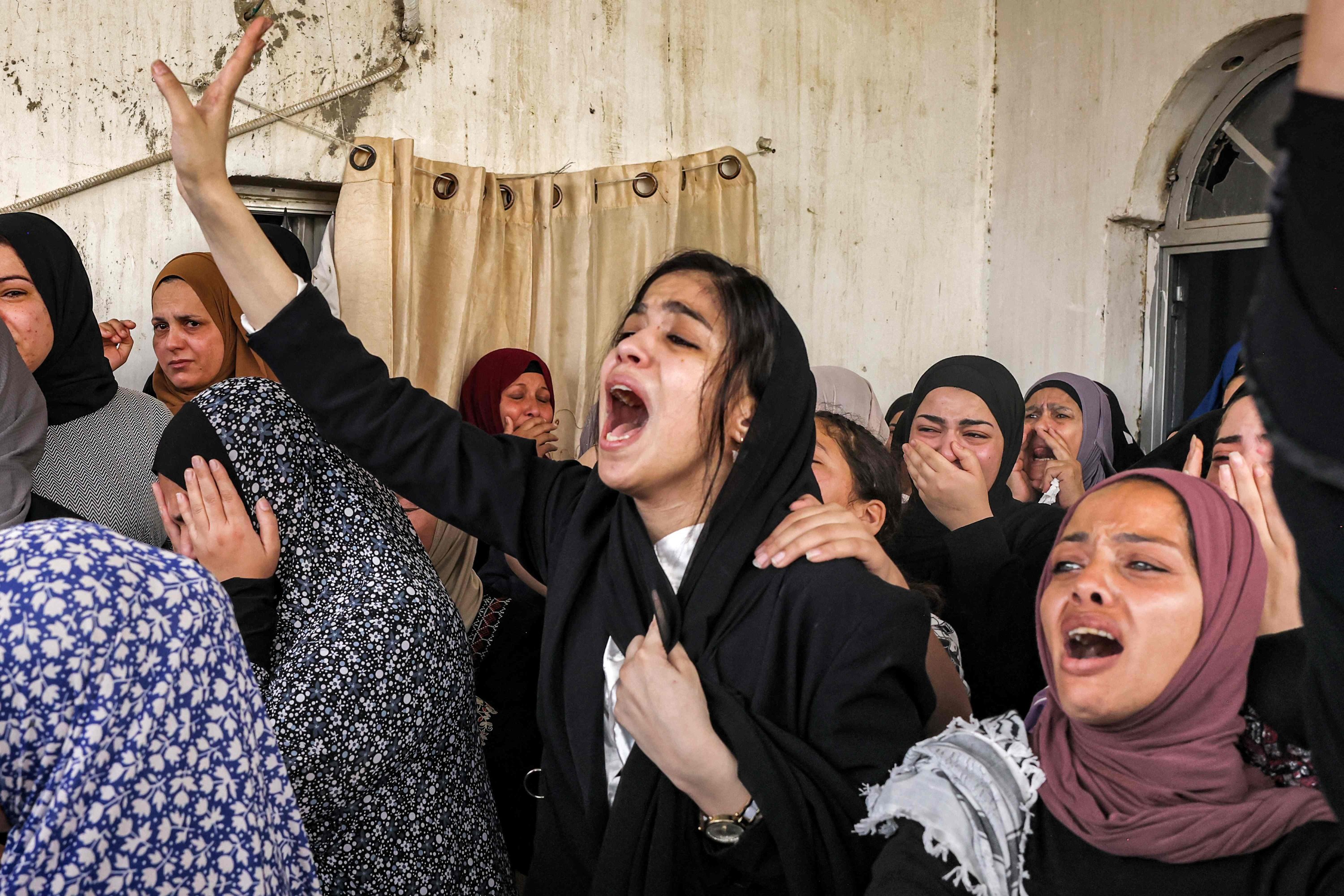 Family members of Palestinian teenager Mohamed Fayez Balhan, 15, react at their family home in the Aqabat Jaber camp, Jericho, occupied West Bank, April 10, 2023. (AFP Photo)