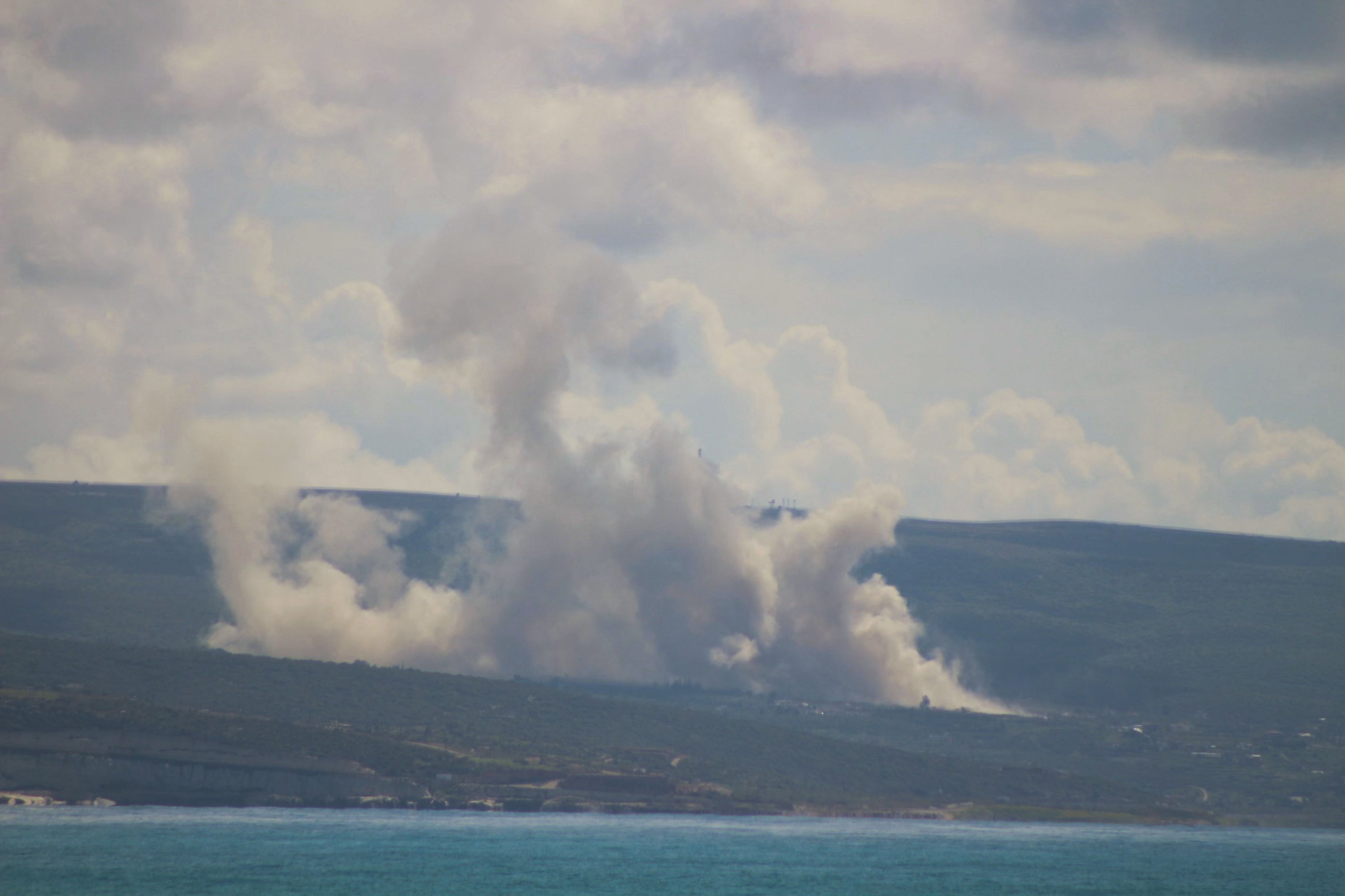 A plume of smoke rises after an Israeli strike on the city of Tyre, southern Lebanon, April 6, 2026. (AFP Photo)